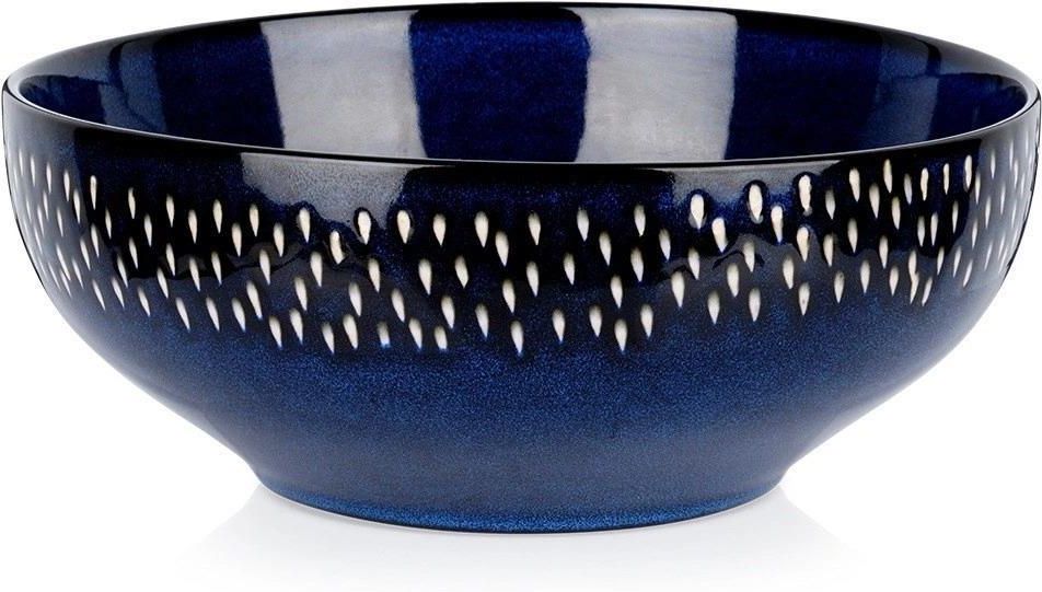Miska GRANATOWA sałatkowa szklana na sałatki potrawy dania owoce 2,8L Kod produktu: 139713 Najważniejsze informacje Miska na sałatkę o pojemności 2,8 l - Duża miska sałatkowa o pojemności 2,8 l, niezbędna w każdym domu. Miska posiada okrągły kształt, ma wymiary 25 x 25 x 9,7 cm. Wykonana z ceramiki - Wykonana z najwyższej jakości ceramiki gresowej w kolorze granatowym z białymi zdobieniami w kształcie łezki. Odpowiednio użytkowana posłuży długie lata. Gres charakteryzuje się większą wytrzymałością i odpornością na uszkodzenia. Uniwersalne zastosowanie - Sprawdzi się w codziennym użytku, jak i podczas wyjątkowych okazji. Idealna do serwowania różnych rodzajów sałatek - warzywnych i owocowych. Można wykorzystać ją również do podawania przekąsek typu chipsy czy popcorn, a także różnych dań. Nadaje się do zmywarki i mikrofalówki - Miseczkę można łatwo wyczyścić, gdyż nadaje się do mycia w zmywarce do naczyń. Można podgrzewać w niej potrawy w kuchence mikrofalowej. Efektowny design - Utrzymana w modnej kolorystyce, która pięknie prezentuje się na stole wraz z inną zastawą. Miska posiada klasyczny, okrągły kształt. Efektowna miska, doskonała do serwowania sałatek czy przekąsek. Niezwykle uniwersalne zastosowanie sprawi, że będzie często używana. Przydatna w każdym domu, zarówno podczas codziennych spotkań jak i wyjątkowych okazji. Łatwa w czyszczeniu i użytkowaniu. Klasyczny kształt sprawia, że efektownie prezentuje się na stole. Oryginalny produkt holenderskiej marki Siaki Collection. Wyprodukowano zgodnie z europejskimi standardami. Materiał: ceramika Długość: 25 cm Szerokość: 25 cm Wysokość: 9,7 cm Pojemność: 2,8 l Waga (g): 1451 Kolor dominujący: granatowy Orion - tworzymy Twój dom Orion to marka, która ma korzenie w Czechach i od momentu swojego założenia w 1992 roku, stała się synonimem jakości, innowacji i dbałości o potrzeby klientów. Nasza firma jest dumna z wieloletniej tradycji i zaangażowania w dostarczanie produktów do domu, kuchni, łazienki i ogrodu, które spełniają najwyższe standardy jakości. Oferta marki Orion to bogactwo kilku tysięcy rodzajów produktów, które zapewniają rozwiązania na miarę współczesnych potrzeb. Bez względu na to, czy szukasz funkcjonalnych akcesoriów do kuchni, eleganckich elementów wyposażenia domu, czy łazienki - Orion ma to, czego potrzebujesz. Priorytet to zadowolenie Klienta. Dlatego starannie dobieramy naszą ofertę produktów, dbając o to, aby każdy produkt spełniał oczekiwania naszych Klientów. Orion to marka, która łączy jakość, elegancję i funkcjonalność w jednym. Nasze produkty są nie tylko praktyczne, ale także estetycznie wykonane, co pozwala Ci cieszyć się życiem w pięknie urządzonym otoczeniu.