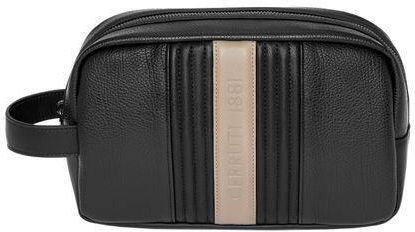 Linia podróżna CERRUTI 1881 `Delano` bawi się kontrastującymi kolorami i teksturami, z pięknie teksturowaną skórą wegańską (PU) obok centralnego beżowego paska z logo luksusowo wytłoczonym logo CERRUTI 1881.
