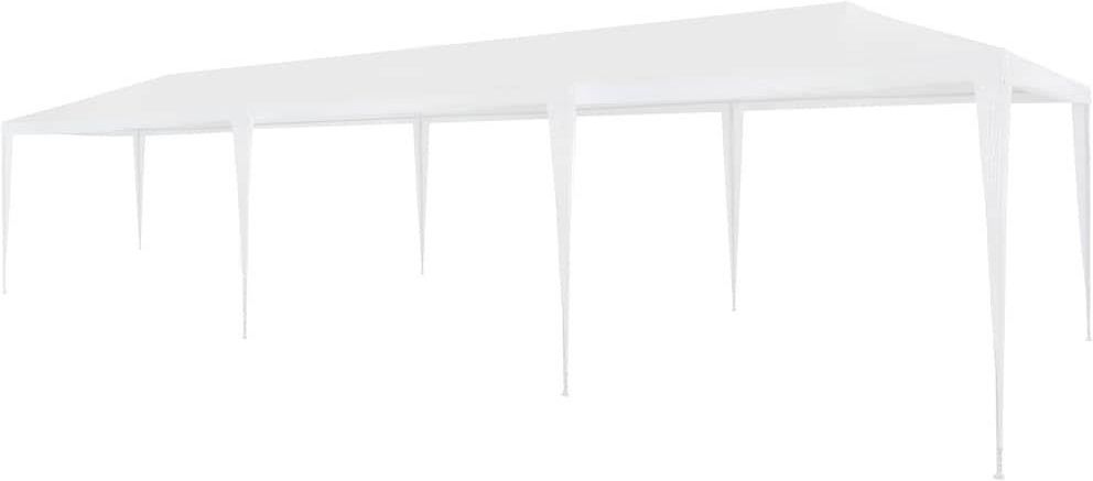 Nasz namiot imprezowy oferuje fantastyczne miejsce na wszelkiego rodzaju przyjęcia i spotkania z rodziną oraz przyjaciółmi. Namiot wykonano z odpornego na promieniowanie UV i wodę polietylenu, dzięki czemu jest bardzo praktyczny do użytkowania na zewnątrz. Rama z odpornej na rdzewienie stali czyni zadaszenie stabilnym i trwałym. Ta altanka ogrodowa jest łatwa w montażu. UWAGA: zalecamy spryskanie go sprayem impregnującym, jeżeli może być narażony na obfite opady deszczu. Tego produktu NIE WOLNO używać przy złej pogodzie, takiej jak silny wiatr, ulewny deszcz, śnieg, burza itp. Kolor: biały Materiał: dach z PE i stalowa rama Wymiary: 3 x 9 x 2,55 m (dł. x szer. x wys.) Wysokość okapu nad ziemią: 2 m Produkt odporny na wodę i promieniowanie UV Akcesoria montażowe w zestawie