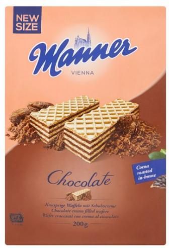 Manner wafle z kremem czekoladowym 200g Selgros111 Chrupiące wafle z nadzieniem kremowo-czekoladowym (82 %). Branża: 30 EAN: 9000331627212 Ilość w opakowaniu zbiorczym: 1 Półka: 0 Regał: 0 Parametry produktu: : Zawartość netto: 200 g Kraj pochodzenia/Wyprodukowano w: Austria Składniki: Cukier, mąka …