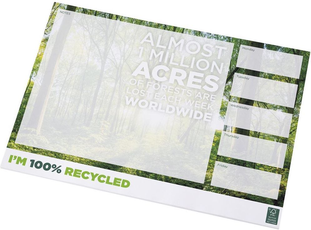 Model standardowy zawiera 50 arkuszy papieru z recyklingu o gramaturze 80 g/m2. Możliwość wykonania nadruku w pełnym kolorze na każdym arkuszu. Dostępne trzy rozmiary: 25 arkuszy (21279011), 50 arkuszy (21279012) i 100 arkuszy (21279014).