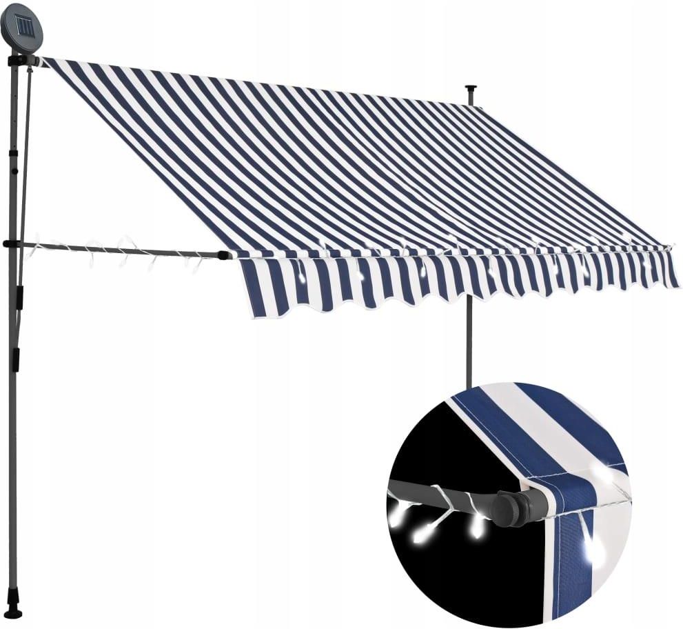 RĘCZNIE ZWIJANA MARKIZA Z LED 300CM NIEBIESKO-B Kartuzy