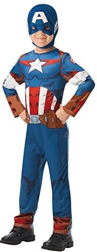 Rubie's Official Marvel Avengers Captain America klasyczny kostium dziecięcy - średni wiek 5-6, wzrost 116 cm Klasyczny kostium zawiera kombinezon z nadrukiem z pasującym drzemką Kostium dostępny w rozmiarach dziecięcych S 3-4, M 5-6, L 7-8 lat i 9-10 lat Oficjalny licencjonowany produkt Rubie's …