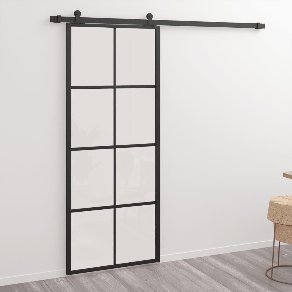 Vidaxl Drzwi Przesuwne Aluminium I Szkło Esg 76X205 Czarne 288064 Kartuzy