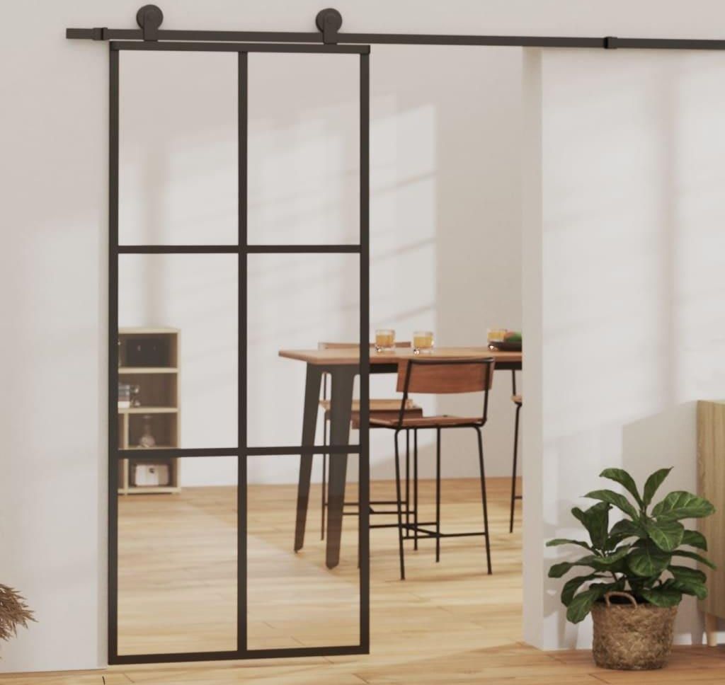 vidaXL Drzwi Przesuwne, Szkło Esg I Aluminium, 90X205Cm, Czarne 151012vidaXL Kartuzy