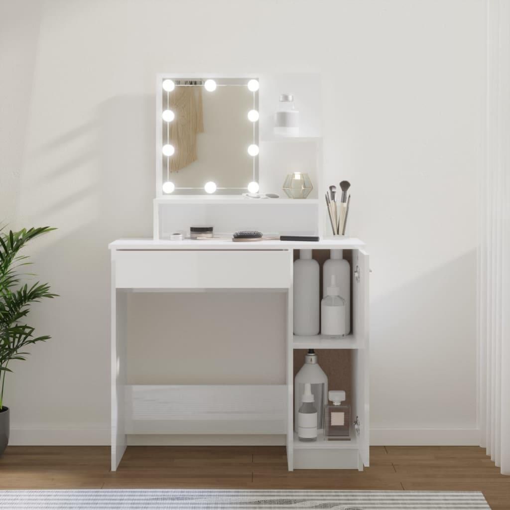 vidaXL Toaletka Z Oświetleniem Led Biała Z Połyskiem 86,5x35x136cm 808816 Kartuzy