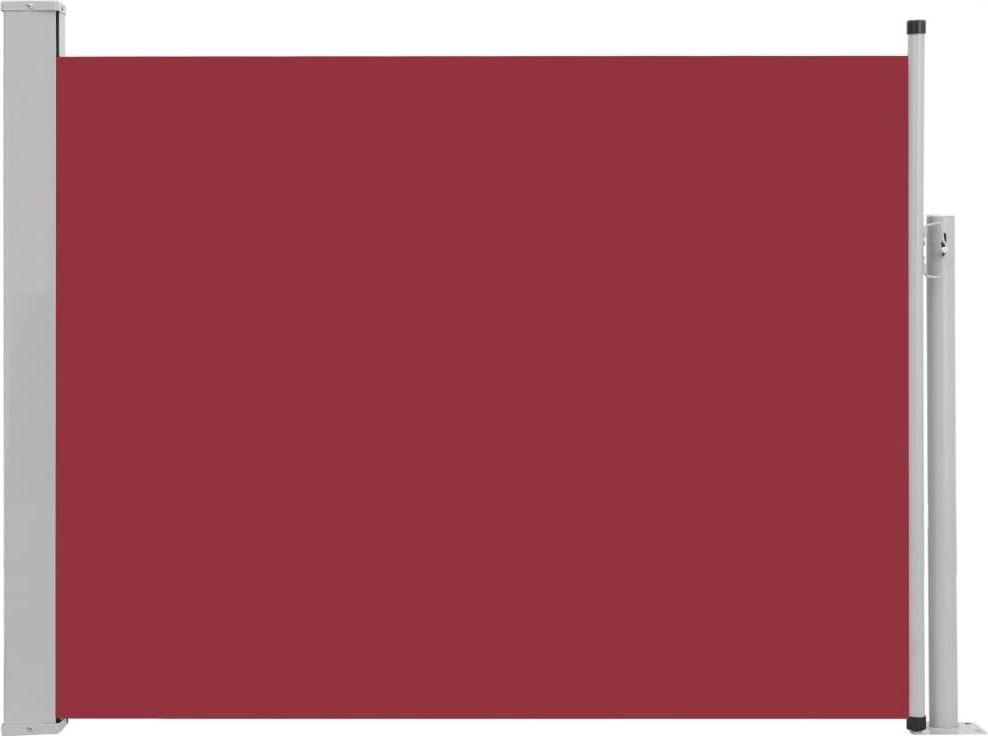 VidaXL Wysuwana markiza boczna na taras, 140 x 500 cm, czerwona vidaXL Kolor: Array Rozmiar: Array Prosta, a zarazem stylowa markiza boczna pozwoli stworzyć przyjemne otoczenie, zapewniając jednocześnie prywatność, której potrzebujesz na balkonie lub tarasie. Ochroni także przed wiatrem oraz słońcem. Ekran wykonano z odpornego na promieniowanie UV i rozdarcia poliestru. Kaseta zamontowana na solidnej, stalowej podstawie w pozycji pionowej sprawia, że markizę można z łatwością wyciągnąć. Roleta ma także funkcję automatycznego zwijania. Jej montaż jest prosty. W skład przesyłki wchodzą akcesoria montażowe. Kolor: czerwona tkanina + szara, stalowa rama Materiał: tkanina z powłoką PU + stalowa rama malowana proszkowo Wymiary: 140 x 0-500 cm (wys. x szer.) Materiał: 100% poliester Produkt odporny na promieniowanie UV i wodę