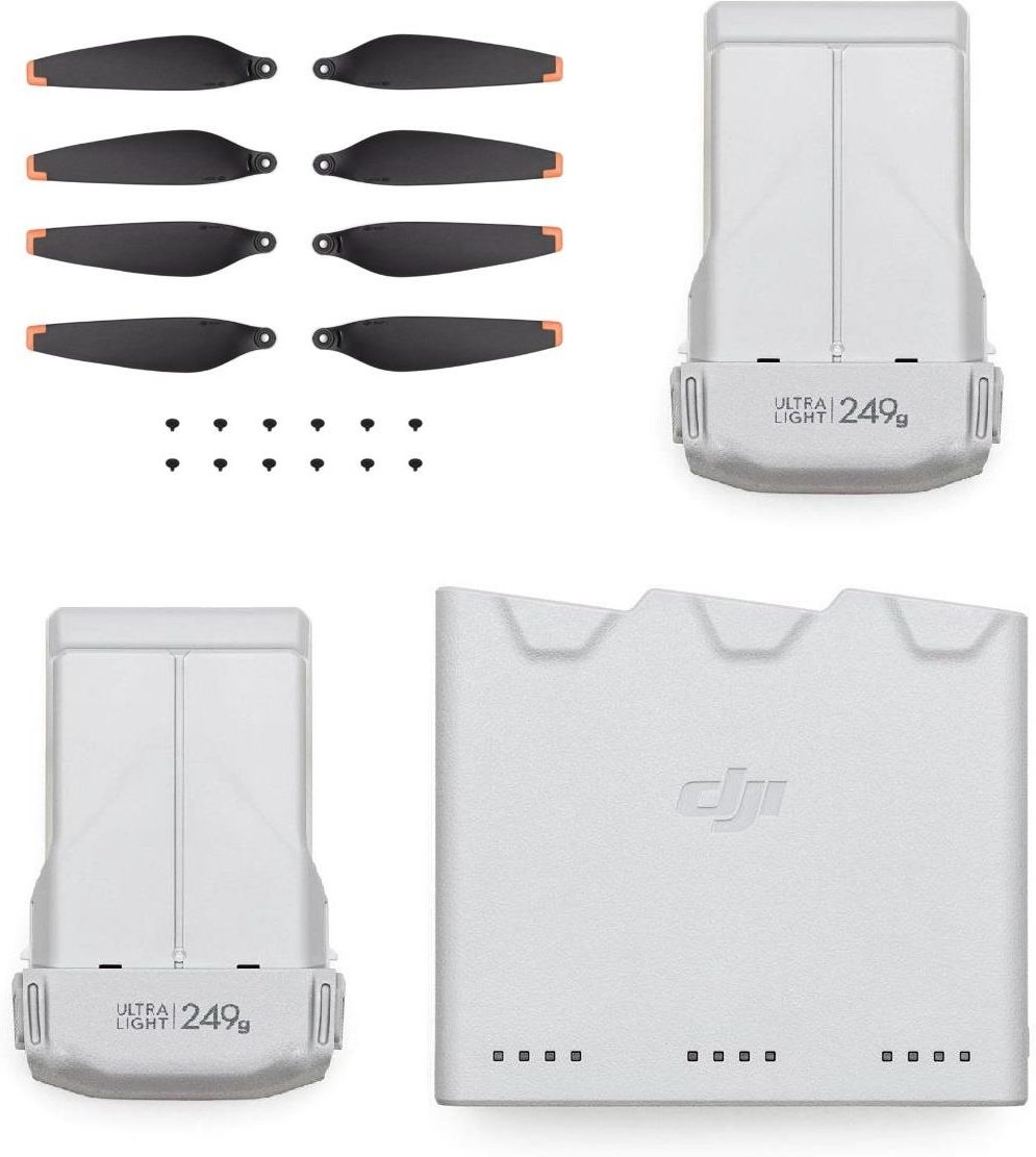 Zestaw akcesorii Fly For Kit dla DJI Mini 3 Pro Odkryj zestaw akcesorii Fly for Kit dla DJI Mini 3 Pro, który pozwoli Ci cieszyć się dłuższym i bardziej efektywnym lotem! W pakiecie znajdziesz dwa inteligentne akumulatory o imponującym czasie pracy do 34 minut każdy. Dwukierunkowy hub do ładowania, który obsługuje trzy akumulatory oraz kontroler, a także pełni funkcję przenośnego źródła zasilania. Do zestawu dołączamy także dodatkowy komplet precyzyjnie wyważonych, cichych śmigieł, które zapewnią maksymalną wydajność aerodynamiczną. To kompletny zestaw, który zapewnia dłuższe loty i więcej kreatywnych możliwości! Pełny skład zestawu: Akumulator bateria DJI Mini 3 Pro x2 Hub ładowania akumulatorów DJI Mini 3 Pro x1 Zestaw śmigieł do DJI Mini 3 Pro x1 Specyfikacja Akumulator Producent DJI Model CP.MA.00000498.01 Pojemność 2453 mAh Waga Ok. 80,5 g Napięcie 7,38 V Limit napięcia ładowania 8,5 V Typ akumulatora Litowo-jonowy Energia 18,1 Wh Maksymalna moc ładowania 37 W Czas ładowania Ok. 64 min (z ładowarką DJI 30W USB-C i akumulatorem zamontowanym w dronie) Temperatura ładowania Od 5° do 40° C (od 41° do 104° F) Zalecana ładowarka Ładowarka DJI 30W USB-C lub inna ładowarka USB Power Delivery Kompatybilność DJI Mini 3 Pro, DJI Mini 3 Hub ładowania Model CHX162-30 Zalecana ładowarka Ładowarka DJI 30W USB-C lub inne ładowarki USB Wejście 5 V, 3 A/9 V, 3 A/12 V, 3 A Wyjście (USB) 5 V, 2 A Zakres temperatur pracy 5° do 40° C Czas ładowania Trzy inteligentne akumulatory można w pełni naładować w ciągu około 3 godzin. Kompatybilność DJI Mini 3, DJI Mini 3 Pro, DJI Mini 4 Pro Śmigła Producent DJI Kompatybilność DJI Mini 3 Pro / DJI Mini 4 Pro Kolor Czarno-pomarańczowy