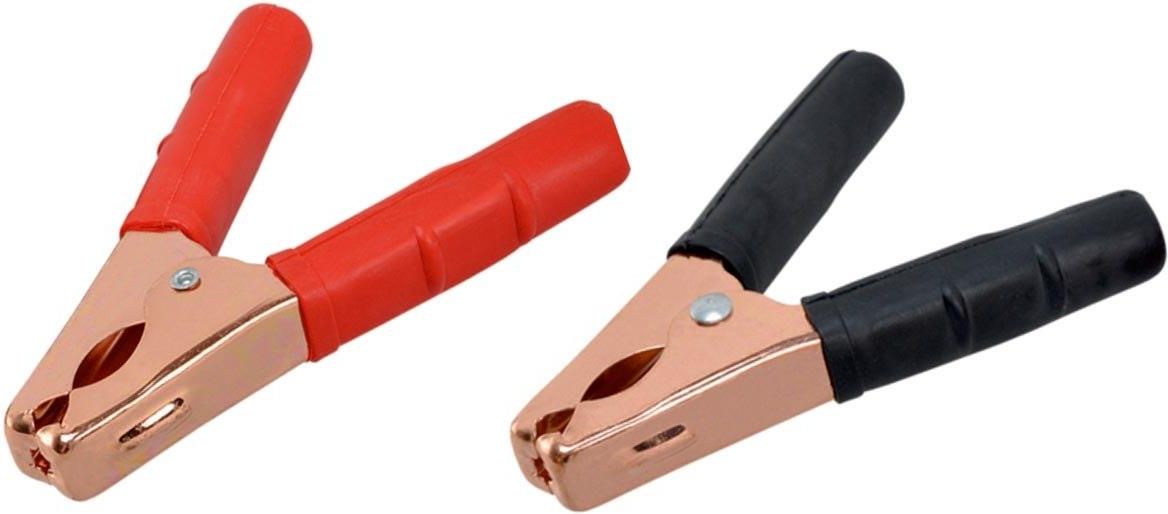 Dane techniczne: Prąd znamionowy: 150-300A Materiał przewodzący: stal pokryta miedzią Zawartość opakowania: 1 szt. krokodylek czarny 1 szt. krokodylek czerwony