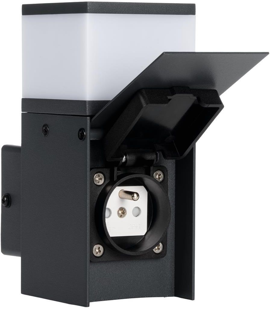 Kinkiet zewnętrzny z gniazdem 230V DASTEN EL16 F SO B Kinkiet zewnętrzny DASTEN EL16 F SO B marki Kanlux o wysokości 16 cm montowany na elewacji budynku, to stylowe i bardzo praktyczne rozwiązanie oświetleniowe. Idealnie nadaje się do oświetlenia strefy wejściowej, tarasu, balkonu lub jako punkt świetlny podkreślający detale architektoniczne, poprawiając orientację i bezpieczeństwo po zmroku. Czarna, aluminiowa obudowa świetnie komponuje się z różnorodną stylistyką ogrodów, dodając im nowoczesnego charakteru. Kinkiet wyposażony jest w pojedyncze gniazdo zasilające 230V z bolcem uziemiającym. Gniazdo pozwala na wygodne podłączenie np. przedłużacza do narzędzi ogrodowych takich jak kosiarka lub piła elektryczna. Dzięki wymiennemu źródłu światła G9 o maksymalnej mocy 11W sam zdecydujesz o barwie światła i mocy, co zapewnia pełną elastyczność w oświetleniu ogrodu. Maksymalna wysokość żarówki jaka może być zastosowana to 51 mm. Źródło światła sprzedawane oddzielnie. Seria opraw ogrodowych Kanlux DASTEN Oprawy z serii DASTEN wyróżniają się modnym, kwadratowym kształtem i stylowym czarnym kolorem, który doskonale współgra z mlecznym kloszem. Wykonane z aluminium i poliwęglanu (PC), oprawy DASTEN posiadają stopień ochrony IP-44, co zapewnia im odporność na warunki atmosferyczne. Seria Kanlux DASTEN to innowacyjne oprawy ogrodowe, inspirowane popularnymi słupkami DASTO. To wyjątkowe rozwiązanie w postaci pierwszych na rynku kinkietów oraz słupków ogrodowych z wymiennym źródłem światła. Seria DASTEN to kinkiety oraz słupki w trzech różnych wysokościach, dostępne w wersjach z gniazdem francuskim (F SO), Schuko (S SO) lub bez gniazd.