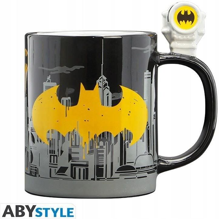 DC Comics mug 3D handle - Bat-Signal / kubek 3D Dc Comics Batman - Bat-Signal - ABS Odpowiedz na wezwanie Bat-Sygnału każdego poranka z tym kubkiem! Cień Mrocznego Rycerza wisi nad Gotham, gdy Batman czujnie strzeże miasta. Czy potrafisz rozpoznać cel jego nocnych łowów? Może znany złodziej czai …