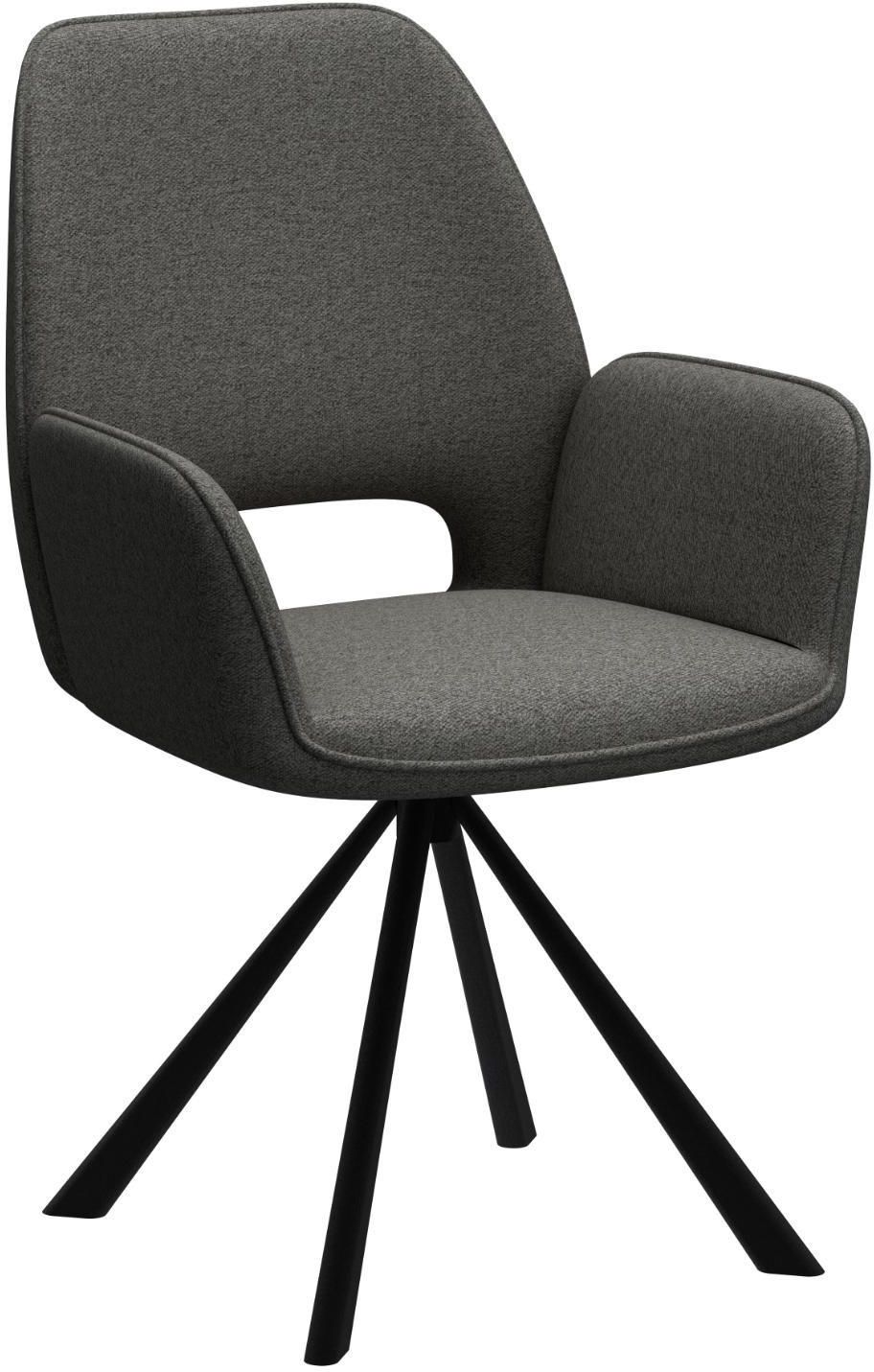 KRZESŁO OBROTOWE GRAHAM CIEMNOSZARE Dostępne od ręki - 1 sztuka Wprowadź do swojego wnętrza elegancję i funkcjonalność dzięki naszemu krzesłu obrotowemu. Miękka, przyjemna w dotyku tapicerka w odcieniach szarości doskonale komponuje się z czarną, matową podstawą z metalu, tworząc ponadczasowe połączenie stylu i komfortu. Wyprofilowane oparcie, zintegrowane podłokietniki oraz obszerne siedzisko zapewniają wygodę nawet podczas długiego siedzenia – idealnie sprawdzi się zarówno w jadalni, jak i domowym biurze. Obrotowa funkcja krzesła zwiększa swobodę ruchu i komfort użytkowania.