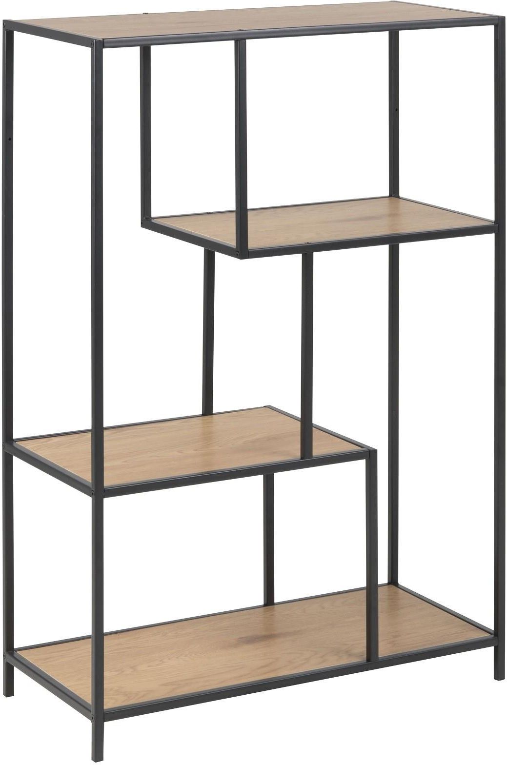 REGAŁ SEAFORD 77X35 CM DZIKI DĄB SEAFORD to praktyczny nowoczesny regał, który idealnie wpisze się nie tylko w przestrzenne wnętrza industrialne, ale sprawdzi się także w minimalistycznej nowoczesnej przestrzeni. Wykonany jest z płyty MDF oklejonej imitacją dzikiego dębu, a został on osadzony na stabilnej metalowej konstrukcji w kolorze czarnym. Ten niezwykle przestronny oraz funkcjonalny regał składa się z 4 asymetrycznie ułożonych półek o różnych wymiarach. Mebel wykonany jest z dużą precyzją, dzięki zachowaniu i odwzorcowaniu naturalnej oryginalności zarówno słojów jak i sęków drzewa co prezentuje się zjawiskowo. Mebel ten bez wątpienia pomieści wszystkie niezbędne rzeczy oraz pozwoli wyeksponować ulubione książki, dekoracje czy fotografie. Regał SEAFORD został zaprojektowany z myślą o praktyczności i organizacji przestrzeni, a połączenie wyglądu metalu i czarnego jesionu nadaje mu nowoczesny charakter, który idealnie wzbogaci każdy nietypowe wnętrze. W serii SEAFORD występują również regały, szafki RTV oraz nocne, komody, wieszaki, biurka, konsole, wózki do serwowania, stoły oraz stoliki o różnych wymiarach i kolorach - patrz produkty powiązane.