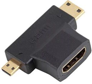 Adapter 2w1 HDMI (F) MicroHDMI (M), MiniHDMI (M)Dzięki temu adapterowi można zastąpić dwa adaptery HDMI - MicroHDMI i HDMI - MiniHDMI. Adapter pozwala na swobodne podłączanie sprzętów typu telefon komórkowy, aparat, tablet zaopatrzonych w port MicroHDMI lub MiniHDMI do odbiorników przez okablowanie HDMI, oraz sprzętów HDMI do urządzeń z wejściem MicroHDMI lub MiniHDMI. Umożliwia przesyłanie wysokiej jakości sygnału cyfrowego HD do urządzeń bez potrzeby zakupu dodatkowego okablowania. Wtyki pokryte są 24-karatowym złotem.Końcówki: gniazdo HDMI (F) wtyk MicroHDMI (M), wtyk MiniHDMI (M)Spełnia wszystkie wymogi najnowszej specyfikacji 1.4, umożliwiając transmisję sygnału FULL HD 1080p.Stan: Nowy
