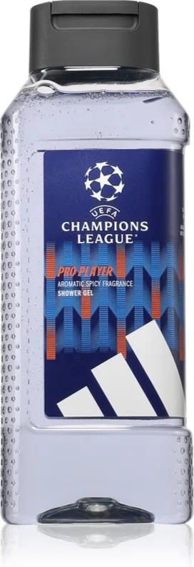 Adidas UEFA Champions League Pro Player, 250 ml, Żele pod prysznic i mydła dla mężczyzn, Żel pod prysznic Adidas UEFA Champions League Pro Player zmieni konieczną codzienną higienę w wyjątkowe odświeżające doznanie. Właściwości: łagodnie myje skórę całego ciała po użyciu zapewni uczucie świeżości i energii