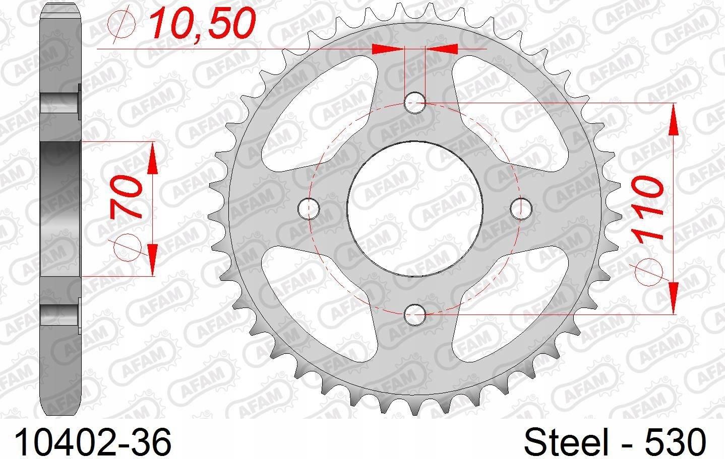 Afam Zębatka Napędzana Tył Moto. Stalowa Ocynkowana Srebrna 10402-36 Katowice