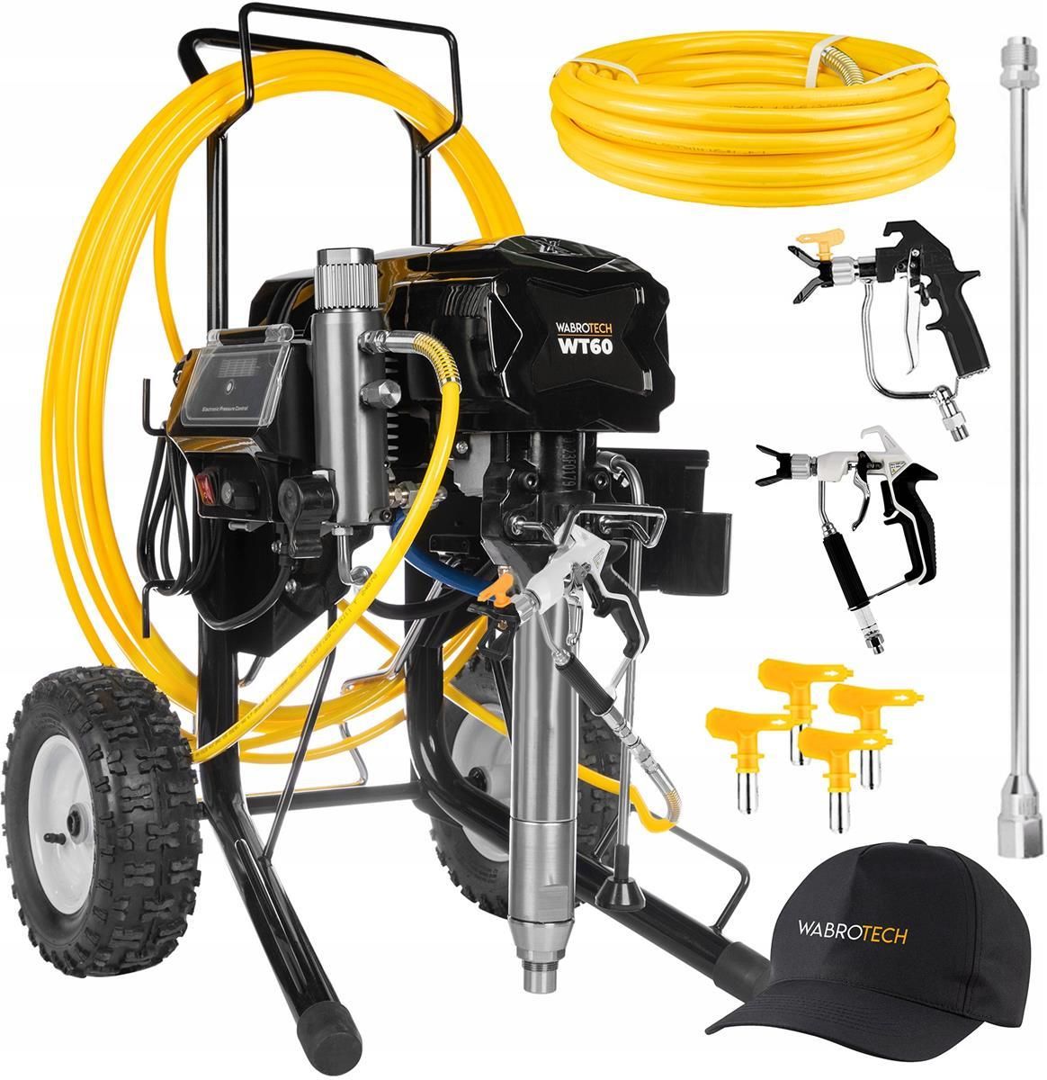 Agregat malarsko - szpachlarski WT60 to udoskonalona wersja WT51. Zmieniona konstrukcja pompy jest bardziej wydajna i pozwoliła uzyskać zwiększoną wartość przepływu, co ułatwia pracę z bardziej gęstymi produktami. Inna konstrukcja uszczelnień oraz tłoka zapewniają jeszcze większą żywotność urządzenia. Zaprojektowany przede wszystkim do obsługi dużych powierzchni, WT60 umożliwia równoczesne nakładanie materiału na dwa stanowiska. Dwa węże podłączane bezpośrednio do reduktora sprawiają, że praca staje się jeszcze bardziej efektywna.