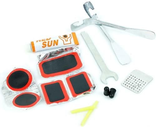 ZESTAW NAPRAWCZY DO ROWERU DĘTEK KÓŁ ŁATKI KLUCZE ZESTAW NAPRAWCZY DO ROWERU DĘTEK KÓŁ ŁATKI KLUCZE Każdy rowerzysta podróżujący regularnie na swoim rowerze powinien zaopatrzyć się w podstawowy zestaw naprawczy. W przypadku wystąpienia nieszczelności warto mieć pod ręką taki zestaw, dzięki czemu w prosty sposób można zniwelować usterkę. Oferta akcesoriów obejmuje również zestawy kluczy i łopatek, za pomocą których samodzielnie można dokonać wymianę dętki z obręczy. Dzięki tego typu produktom domowa wymiana dętki i naprawa jest o wiele szybsza i przyjemniejsza. Całość zapakowana. Zestaw narzędzi rowerowych w praktycznym etui, niezbędny gadżet dla każdego turysty rowerowego - prędzej czy później zawsze zajdzie potrzeba wymiany / załatania dętki daleko od domu. Z tym zestawem bezpiecznie możesz bez obaw wyjeżdżać na długie wycieczki - przebita opona przestanie być palącym problemem! Zestaw naprawczy klucz do kół klej łopatki do obręczy łatka na dętkę tarka do zmatowienia dętki Po przyklejeniu łatki do dętki należy odczekać 3 minuty, następnie sprawdzić dętkę czy nie ucieka z niej powietrze. Cechy produktu Produkt fabrycznie nowy, wysokiej jakości. Kieszonkowy zestaw narzędzi do naprawy roweru, niezbędny każdemu rowerzyście. Całość zamknięta w wygodnym blistrze. Pakiet rowerzysty to ciekawy pomysł na prezent dla każdego, w szczególności dla tych, którzy lubią aktywnie jeździć na rowerze