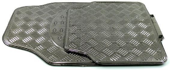 DYWANIK SAMOCHODOWY ALUMINIOWY CARBON Komplet uniwersalnych dywaników aluminiowych dwa przednie dywaniki i dwa tylne. Dywaniki wykonane są w technologii trzywarstwowej: górna przezroczysta warstwa nadaje dywanikom połysk i zabezpiecza je ścieraniem warstwa środkowa imituje aluminiową blachę "ryflowaną" ostatnia spodnia warstwa wykonana z gumy antypoślizgowej z odstającymi wypustkami zapobiegającymi przesuwaniu się dywaników po podłodze. Dywaniki są łatwe w czyszczeniu.Stan: Nowy Opakowanie: Bulk (folia)Waga: 3210g