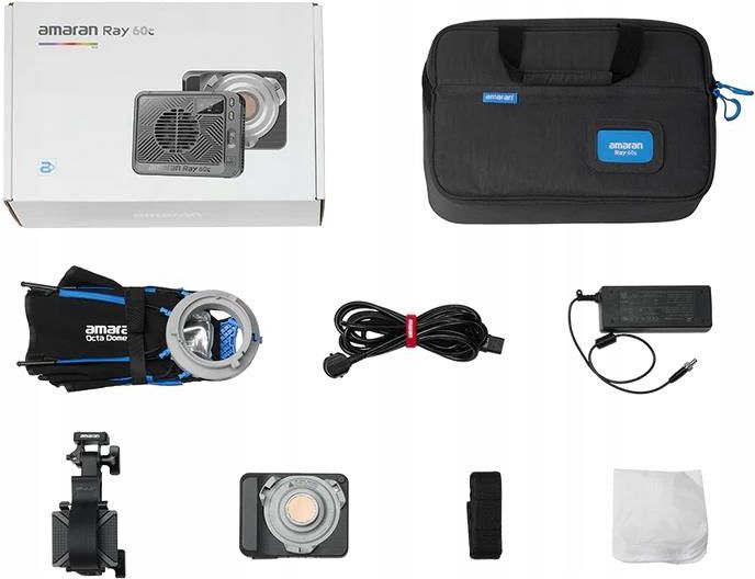 Lampa LED Amaran Ray 60c Amaran Ray 60c to ultra-kompaktowa, pełnokolorowa lampa COB z mocowaniem Bowens, o mocy 60 W. Została zaprojektowana dla twórców potrzebujących dużej mocy w ograniczonej przestrzeni. Wyposażona w innowacyjny silnik światła OmniColor, zapewnia wyjątkową jakość bieli, naturalne odcienie skóry i precyzyjne odwzorowanie kolorów, oferując pełniejsze spektrum barw. Jej ultra-smukła konstrukcja (4.4 cm) i niezwykle niska waga (528 g) sprawiają, że jest idealnym narzędziem do pracy w terenie, umożliwiając szybkie pakowanie, montaż i transport. Z jasnością do 3 910 luxów na 1 metr (bez modyfikatora), Ray 60c jest ponad 50% jaśniejsza niż COB 60x S, przy niemal dwukrotnie mniejszych rozmiarach. Lampa oferuje również niezrównaną elastyczność zasilania, wspierając bezprzewodową pracę dzięki technologii Ace E-Lock oraz power bankom USB-C PD 3.0. Główne cechy produktu Ultra-kompaktowa lampa COB o mocy 60 W z pełnym spektrum kolorów i mocowaniem Bowens. Zasilana innowacyjnym silnikiem światła OmniColor, gwarantującym czystsze biele, wierne odcienie skóry i precyzyjne kolory. Wyjątkowa jasność do 3 910 luxów @ 1m (bez modyfikatora), przewyższająca COB 60x S o ponad 50%. Ultra-smukła konstrukcja (4.4 cm grubości) i niska waga (528 g) dla maksymalnej mobilności. Elastyczne opcje zasilania bezprzewodowego dzięki Ace E-Lock i wsparciu dla power banków USB-C PD 3.0. W zestawie z softboxem amaran Octa Dome 30, gridem oraz torbą transportową. Szybki montaż i demontaż dzięki adapterowi amaran Ace Lock do Baby Pin. Specyfikacja Moc: 60 W Jasność (1m, bez modyfikatora): 3 910 lux Grubość: 4.4 cm Waga: 528 g Technologia kolorów: OmniColor Mocowanie: Bowens Opcje zasilania: Ace E-Lock, USB-C PD 3.0 Zawartość zestawu: 1x amaran Ray 60c 1x amaran Ace Lock to Baby Pin Adapter Grip 1x amaran Octa Dome 30 1x amaran Octa Dome 30 Diffusion Cloth 1x amaran Octa Dome 30 Light Control Grid 1x amaran AC to DC 90W Power Adapter (0.5m) 1x amaran AC Power Cable (4m) 1x amaran Ray Carrying Bag