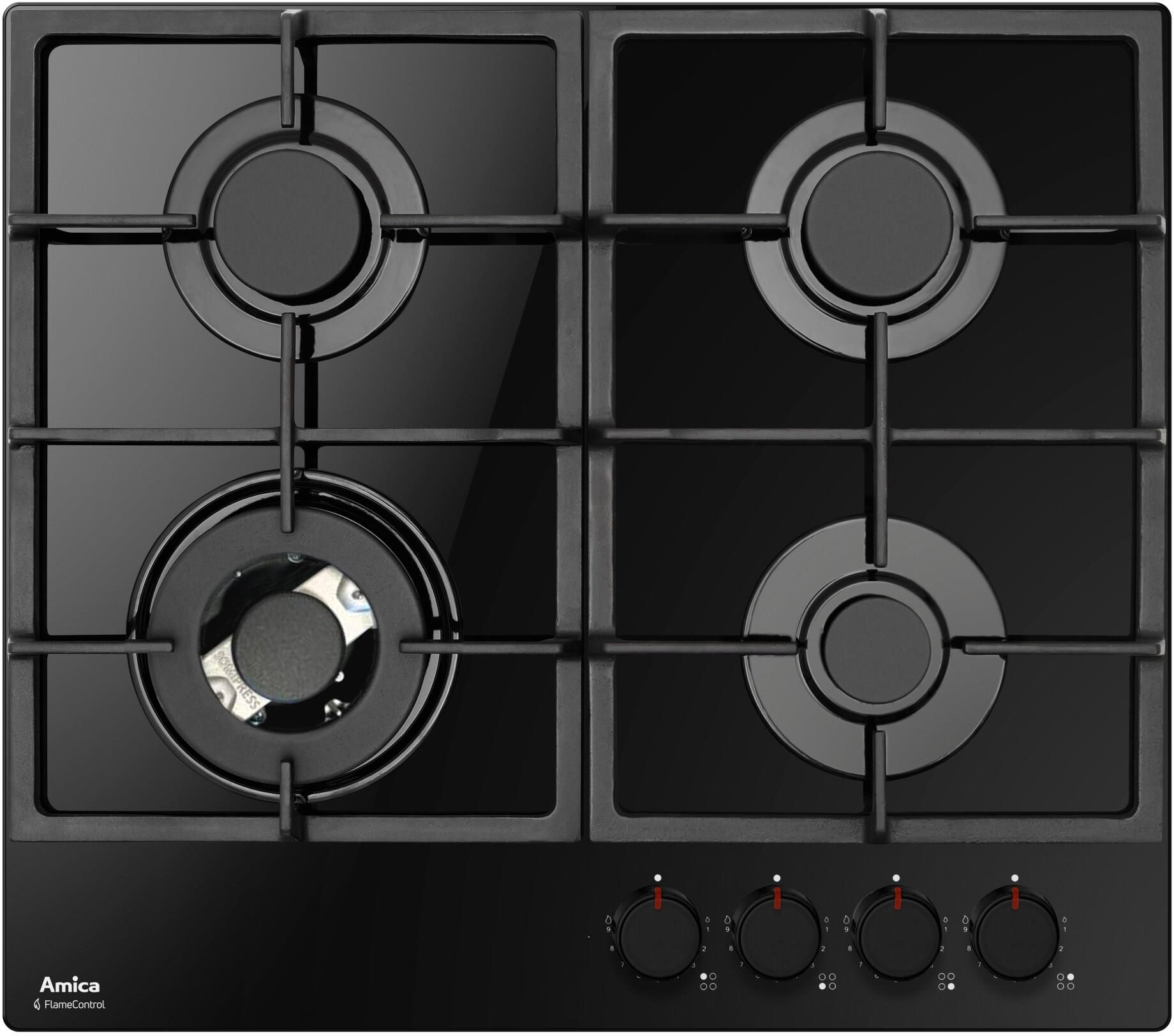Płyta gazowa AMICA PGCAT6161ApFB. Duży palnik 2,8 KW. Szybsze gotowanie większych porcji. Powierzchnia szklana to nie tylko elegancki i nowoczesny design, ale także łatwość czyszczenia. Palnik WOK.