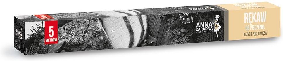 Rękaw do pieczenia dużych porcji mięsa 5m box Anna Zaradna Cechy: długość: 5 m szerokość: 36 cm grubość folii: 12 µm wytrzymały na wysokie temperatury: do 200°C w opakowaniu 10 klipsów do zamknięcia Najsmaczniejsze pieczone mięsa, drób, ryby, owoce i warzywa to te przyrządzane w rękawie do pieczenia Anna Zaradna. Używając rękawa podczas pieczenia zachowujesz w potrawach pełnię aromatu, witaminy oraz mikroelementy. Dzięki temu podajesz zdrowe i soczyste dania. Tak przygotowane potrawy są również mniej kaloryczne, bo piekąc je w rękawie nie ma konieczności dodawania tłuszczu. Rękaw do pieczenia Anna Zaradna jest wytrzymały na wysokie temperatury, nie ma obawy, że rękaw pęknie. Możesz używać go w kuchence mikrofalowej, piekarniku gazowym i elektrycznym w temperaturze do 200 st. C. W opakowaniu znajduje się 10 klipsów umożliwiających szybkie i łatwe zawiązanie rękawa do pieczenia. Jak używać? Rękaw do pieczenia znakomicie sprawdzi się podczas pieczenia mięsa, ale również ryb, warzyw i innych produktów spożywczych. Odetnij kawałek rękawa do pieczenia o około 20 cm więcej niż wynosi długoś pieczonej potrawy. Włóż potrawę do rękawa do pieczenia i zamknij załączonymi klipsami. Pamiętaj aby rękaw podczas pieczenia nie dotykał ścianek piekarnika.