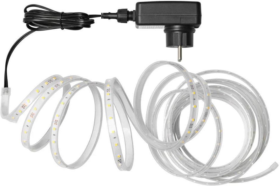 Listwa LED IP44 12 V 2700 K 1800 lm 5 m Do użytku wewnątrz i na zewnątrz pomieszczeń 2,5-metrowy przewód Nr art.: AN019908EU Listwa LED do użytku wewnątrz i na zewnątrz pomieszczeń. Listwa LED do użytku wewnątrz i na zewnątrz pomieszczeń. Efektowne i dyskretne oświetlenie zarówno do użytku wewnątrz, jak i na zewnątrz pomieszczeń – tylko wyobraźnia wyznacza granice! 2,5 m przewód między listwą a transformatorem. Specyfikacja techniczna Zawiera żarówkę o klasie energetycznej: F Współczynnik oddawania barw: Ra 83 Klasa szczelności: IP44 Żywotność: 30 000 h Napięcie: 12 V Możliwość ściemniania: Nie Długość kabla: 2,5 m Odcień: Ciepłobiały Temperatura barwowa: 2700 K Moc: 20 Liczba żarówek: 300 Strumień świetlny: 1800 lm Wymiary: Dł. 5000 x szer. 10 x wys. 5 mm