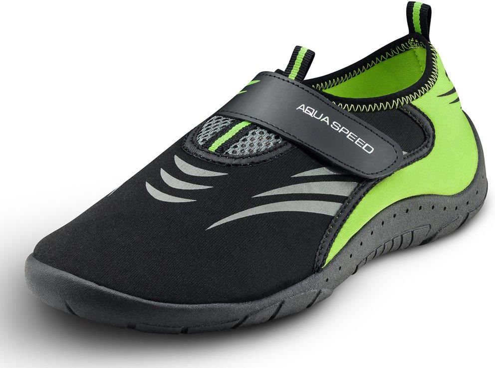 Buty plażowe Aqua-Speed Specyfikacja: Materiał: Neoprenowy, szybkoschnący, odporny na słoną i słodką wodę Podeszwa: Twarda z wibramem, zmniejsza ryzyko poślizgnięcia Wentylacja: Siateczkowa wstawka w górnej części buta Informacja o produkcie: Idealne do sportów wodnych Zapinane na rzep dla lepszego dopasowania Uchwyt na pięcie ułatwia zakładanie Neoprenowa konstrukcja zapewnia trwałość Dlaczego warto kupić Buty plażowe Aqua-Speed: Po pierwsze, ochrona stóp na plaży i w wodzie Po drugie, komfortowe i bezpieczne użytkowanie Po trzecie, idealne do wielu aktywności wodnych Po czwarte, łatwe do czyszczenia i konserwacji Zanurz się w przygodach wodnych z butami plażowymi Aqua-Speed. Idealne do ochrony stóp na plaży, podczas nurkowania czy kajakarstwa, te buty zapewniają komfort, bezpieczeństwo i wszechstronność, niezbędne do cieszenia się każdą chwilą nad i pod wodą. Tabela rozmiarów: 22 : 13.50cm 23 : 14.50cm 24 : 15.00cm 25 : 16.00cm 26 : 17.00cm 27 : 17.50cm 28 : 18.00cm 29 : 19.00cm 30 : 19.50cm 31 : 20.00cm 32 : 20.50cm 33 : 21.00cm 34 : 21.50cm 35 : 22.50cm 36 : 23.50cm 37 : 24.00cm 38 : 24.50cm 39 : 25.50cm 40 : 26.00cm 41 : 27.00cm 42 : 27.50cm 43 : 28.00cm 44 : 28.50cm 45 : 29.00cm 46: 29.50cm