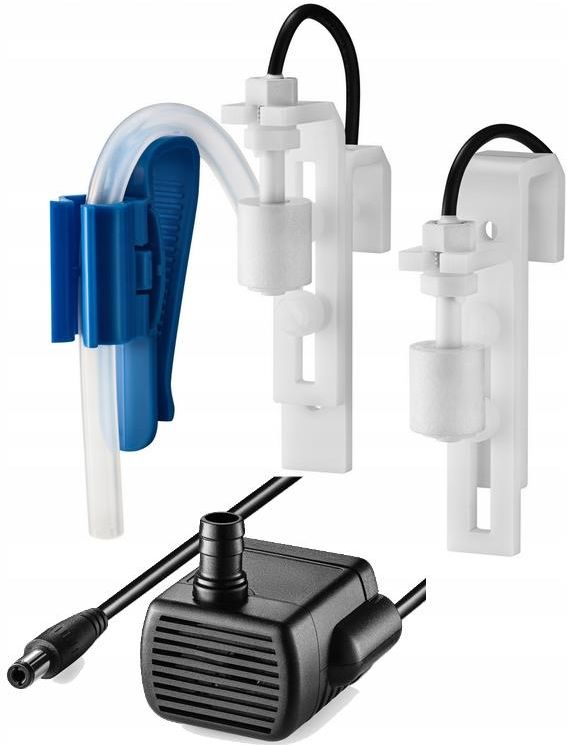 Aqua-Trend Samudra Level Control DP - Automatyczna dolewka do dozownika DoserX Zestaw automatycznej dolewki z pompą wody współpracujący z dozownikiem SAMUDRA DoserX. Zestaw zalecany do użytku bezpośrednio w zbiorniku dekoracyjnym. Dwa niezależne czujniki poziomu wody: Czujnik uruchamiający kontroluje poziom wody, czujnik awaryjny chroni system przed przelaniem. Dwa praktyczne, regulowane uchwyty czujników poziomu wody. Regulacja wysokości zawieszenia czujnika. Pompa wody: W zestawie mikro pompa wody o wydajności 280l/h. Wysoki słup podnoszenia wody do 2 metrów. Energooszczędna i niskonapięciowa. Dodatkowo w zestawie 150cm węza silikonowego. Dane techniczne: - długość przewodów czujników poziomu wody: 200cm - pompa: 5W, 280l/g, ponoszenie 200cm - długość przewodu pompy: 200cm - wymiary pompy: 40x40x30mm Do każdego zamówienia zestaw poradników gratis! W trosce o środowisko poradniki wysyłane są drogą elektroniczną.