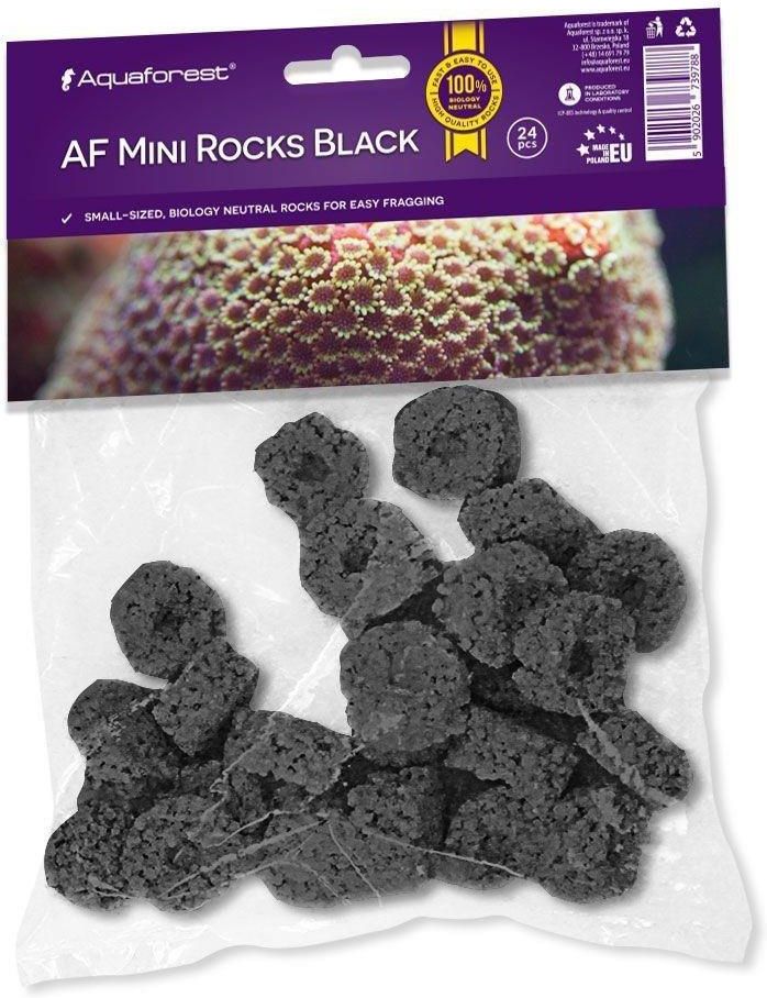 AQUAFOREST Mini Rocks Black skały biologiczne 24 szt. Wysokiej jakości biologicznie neutralne kamienie stworzone z myślą o łatwym szczepieniu koralowców. Syntetyczne kamienie Aquaforest strukturą przypominają te naturalnie występujące w przyrodzie. W przeciwieństwie do kamieni ceramicznych, zostały …