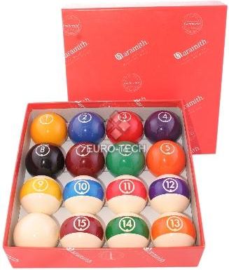 Jakosc Aramitha po umiarkowanej cenie, oto zestaw bill Aramith Continental. Zawiera 15 bil standardowych i biała bilę. Cechy bil Aramith to idealna owalność i równowaga. Jednolita waga i twardosc poszczególnych bili. Kupując bile Aramitha masz pewnośc, że nabywasz jeden z najlepszej jakości towarów na rynku. Bile Aramith wykonane sa z termoutwardzanej żywicy która zapewnia im żywotnośc do 5 razy dłuższą niżzwyczajnych bili. Bile Continental w przeciwieństwie do innych zestawów są tylko malowane, dlatego nie należy ich czyścić, nawet przy użyciu środków Aramith!