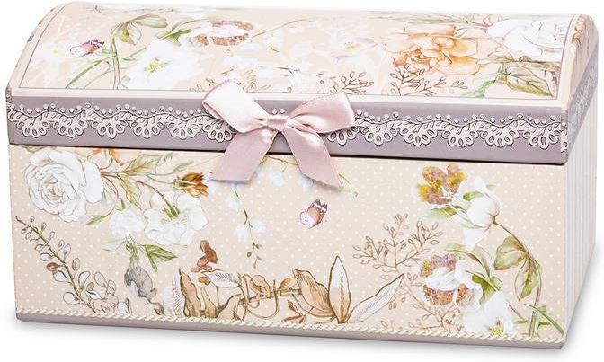 PUDEŁKO H5744 D512/24 Bardzo atrakcyjna wizualnie szkatułka na biżuterię, przygotowana z wytrzymałego kartonu i ozdobiona wspaniałą grafiką z kwiatami. Jest piękną dekoracją wnętrza, która jednocześnie zapewnia praktyczne zastosowanie w postaci schowka na biżuterię lub inne drobne elementy. Wymiary: 10 x 20 x 12 cm