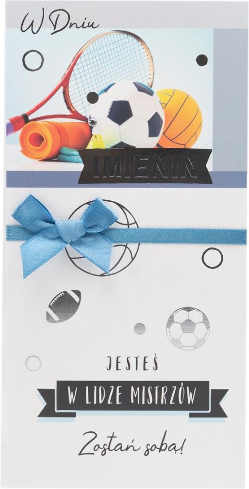 Kartka okazjonalna z życzeniami oraz kopertą opleciona niebieską wstążką z kolekcji SatyNovej Wyraź swoje uczucia i życzenia za pomocą tej pięknej kartki okazjonalnej. Kartka wykonana jest z wysokiej jakości tektury, co sprawia, że jest trwała i elegancka. Jej sportowy motyw dodaje uroku i sprawi, …