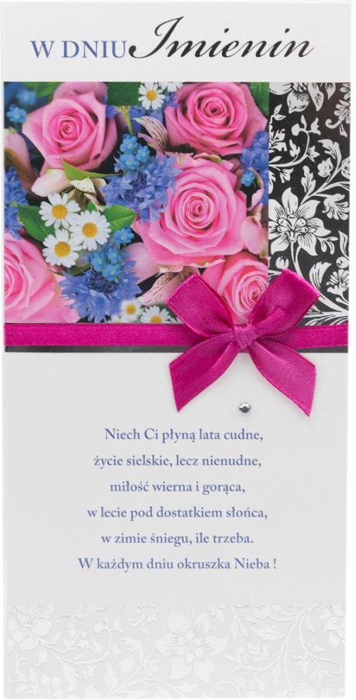 Kartka okazjonalna z życzeniami oraz kopertą opleciona malinową wstążką z kolekcji SatyNovej Wyraź swoje uczucia i życzenia za pomocą tej pięknej kartki okazjonalnej. Kartka wykonana jest z wysokiej jakości tektury, co sprawia, że jest trwała i elegancka. Jej kolorowy, kwiatowy motyw dodaje uroku i sprawi, że odbiorca poczuje się wyjątkowo. Karnet daje Ci możliwość wyrażenia swoich uczuć w szczególny sposób. Wewnątrz kartki widnieją napisane już życzenia: "Uśmiechu każdego dnia, radości co wiecznie trwa, życia pięknego i wszystkiego dobrego." . Pod życzeniami znajduje się miejsce na wpisanie własnych słów czy dedykacji. Możesz napisać kilka serdecznych słów lub stworzyć osobistą wiadomość dla bliskiej osoby. Ta kartka okazjonalna to idealny sposób na przekazanie życzeń z okazji imienin. Może być zarówno osobistym podarunkiem dla bliskiej osoby, jak i dodatkiem do większego prezentu. Zamów teraz tę piękną kartkę okazjonalną i spraw radość swoim najbliższym! Bądź oryginalny w wyrażaniu swoich uczuć! Wzór: SNV-IM-0386 WSTĄŻKA MALINOWA Produkt 1 x kartka 1 x koperta Wymiary kartka długość: 21,5 cm kartka szerokość: 10,6 cm Materiał tektura Użytkowanie prezent na różne okazje