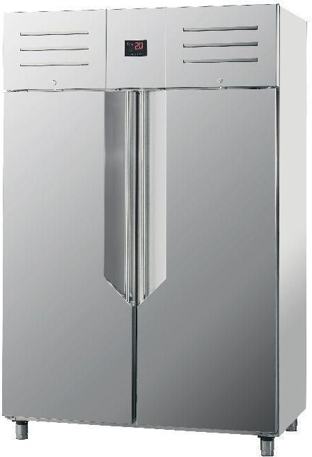 Szafa chłodnicza nierdzewna 1400 l. Wykonana z wysokiej jakości stali nierdzewnej przeznaczonej do profesjonalnego użytkowania. Poliuretanowa, wtryskiwana pod wysokim ciśnieniem izolacja termiczna ścian o grubości 80 mm i wysokiej gęstości 40kg/m3, wolna od CFC. Samozamykające drzwi wyposażone w zamek, automatyczne domykanie poniżej 90o, maksymalny kąt otwarcia 120o. Drzwi wyposażone w wygodny uchwyt na całej długości. Dno szafy wykonane z pojedynczego, tłoczonego arkusza blachy. Nóżki z możliwością regulacji od 9,5-11,5cm. Możliwość dokupienia kółek jezdnych oraz pedała do otwierania drzwi. Szafa posiada 6 półek rusztowych powlekanych powłoką epoksydową w standardzie GN 2/1 ( po 3 na każde drzwi ) z możliwością montowania na 24 poziomach, wyjmowane prowadnice. Półki o nośności 40 kg każda. Odstęp między półkami 5,5cm Szafa dostosowana do pojemników gastronomicznych GN 2/1 lub 2x GN 1/1. Urządzenie posiada kontroler z dużym ekranem dotykowym i łatwą regulację parametrów, moduł oszczędzania energii oraz system alarmowy HACCP. LED- owe podświetlenie wnętrza szafy. Otwory wentylacyjne w przednim panelu poprawiają estetykę oraz utrzymują odpowiednie warunki dla systemu chłodzenia dzięki czemu działa bardziej wydajnie. Bezobsługowy skraplacz posiada specjalną konstrukcję, niewymagającą szczególnej konserwacji. Parownik z wymuszonym obiegiem powietrza, pokryty powłoką antykorozyjną. automatyczne odparowanie skroplin. Odzyskiwany z kompresora gorący gaz pozwala na automatyczne ogrzanie i wyparowanie skroplin, bez użycia dodatkowych elementów grzewczych, oszczędzając dzięki temu energię oraz skracając o połowę czas rozmrażania. Urządzenie posiada 5 klasę klimatyczną. Uwaga: Towar na zamówienie. Czas oczekiwania określany przy składaniu zamówienia.