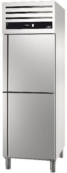 Szafa chłodnicza nierdzewna 700 l. Wykonana z wysokiej jakości stali nierdzewnej przeznaczonej do profesjonalnego użytkowania. Poliuretanowa, wtryskiwana pod wysokim ciśnieniem izolacja termiczna ścian o grubości 60 mm i wysokiej gęstości 40kg/m3, wolna od CFC. Samozamykające drzwi wyposażone w zamek, automatyczne domykanie poniżej 90o, maksymalny kąt otwarcia 120o. Drzwi wyposażone w wygodny uchwyt na całej długości. Dwustronne zawiasy oraz magnetyczna uszczelka. Dno szafy wykonane z pojedynczego, tłoczonego arkusza blachy. Nóżki z możliwością regulacji od 12,5cm - 20cm. Możliwość dokupienia kółek jezdnych. Szafa posiada 3 półki z możliwością montowania na 23 poziomach, wyjmowane prowadnice. Półki o nośności 40 kg każda. Szafa dostosowana do pojemników gastronomicznych GN 2/1 lub 2x GN 1/1. Każde duże drzwi wyposażone w 3 półki epoksydowe GN 2/1 lub małe drzwi wyposażone w 1 półkę epoksydową GN 2/1. Otwory wentylacyjne w przednim panelu poprawiają estetykę oraz utrzymują odpowiednie warunki dla systemu chłodzenia dzięki czemu działa bardziej wydajnie. Bezobsługowy skraplacz posiada specjalną konstrukcję, niewymagającą szczególnej konserwacji. Parownik z wymuszonym obiegiem powietrza, pokryty powłoką antykorozyjną. automatyczne odparowanie skroplin. Odzyskiwany z kompresora gorący gaz pozwala na automatyczne ogrzanie i wyparowanie skroplin, bez użycia dodatkowych elementów grzewczych, oszczędzając dzięki temu energię oraz skracając o połowę czas rozmrażania. Czynnik chłodniczy: R600a Hydrocarbon (HC). Zakres temperatury pracy od -2oC do +8oC w IV klasie klimatycznej. Zasilanie: 230V 1+N- 50Hz. Uwaga: Towar na zamówienie.