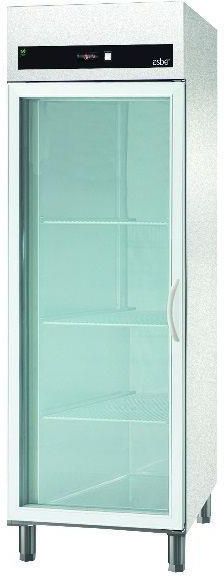 Szafa chłodnicza przeszklona 700l. Obudowa wykonana ze stali galwanizowanej pokrytej aluminiowo-cynkową powłoką, posiada wyższą odporność na uszkodzenia mechaniczne oraz korozję niż zwykłe szafy malowane. Poliuretanowa, wtryskiwana pod wysokim ciśnieniem izolacja termiczna ścian o grubości 50 mm i wysokiej gęstości 40kg/m3, wolna od CFC. Samozamykające drzwi wyposażone w zamek, automatyczne domykanie poniżej 90o, maksymalny kąt otwarcia 120o. Drzwi wyposażone w wygodny uchwyt na całej długości. Dwustronne zawiasy oraz magnetyczna uszczelka. Dno szafy wykonane z pojedynczego, tłoczonego arkusza blachy. Nóżki z możliwością regulacji od 12,5cm - 20cm. Możliwość dokupienia kółek jezdnych oraz pedała otwierającego drzwi. Szafa posiada 3 półki z możliwością montowania na 18 poziomach w modelach z dużymi drzwiami - odległość między półkami 7 cm, wyjmowane prowadnice. Półki o nośności 30 kg każda. Szafa dostosowana do pojemników gastronomicznych GN 2/1 lub 2x GN 1/1. Każde duże drzwi wyposażone w 3 półki epoksydowe GN 2/1 lub małe drzwi wyposażone w 1 półkę epoksydową GN 2/1. Otwory wentylacyjne w przednim panelu poprawiają estetykę oraz utrzymują odpowiednie warunki dla systemu chłodzenia dzięki czemu działa bardziej wydajnie. Bezobsługowy skraplacz posiada specjalną konstrukcję. Parownik z wymuszonym obiegiem powietrza, pokryty powłoką antykorozyjną. automatyczne odparowanie skroplin. Odzyskiwany z kompresora gorący gaz pozwala na automatyczne ogrzanie i wyparowanie skroplin, bez użycia dodatkowych elementów grzewczych, oszczędzając dzięki temu energię oraz skracając o połowę czas rozmrażania. Uwaga: Towar na zamówienie. Czas oczekiwania określany przy składaniu zamówienia.