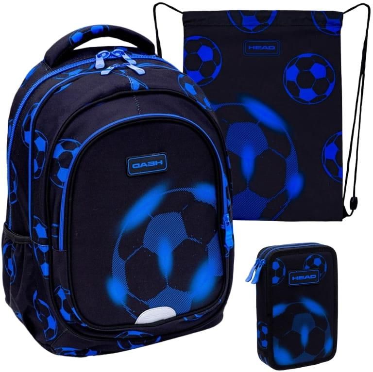 Astra Zestaw Szkolny Plecak Duży Pojemny Trzykomorowy + Worek Na Obuwie Buty Sportowy Piórnik Podwójny Bez Wyposażenia Head Neo Blue Football Katowice