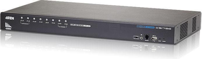 8-portowy przełącznik KVM USB HDMI/Audio CS1798 Obsługa połączeń kaskadowych do trzech poziomów i sterowania nawet 512 komputerami Funkcja Multi-Display - możliwość połączenia do ośmiu modułów CS1798 i wyświetlania obrazu z nawet ośmiu monitorów (tryb dwóch monitorów / trzech monitorów / czterech monitorów / wielu monitorów) Video DynaSync - specjalna technologia ATEN, która eliminuje problemy z wyświetlaniem podczas rozruchu i optymalizuje rozdzielczość podczas przełączania między portami Obsługa dźwięku - pełne pasmo przenoszenia tonów niskich, zapewniające dobrą jakość w systemach stereofonicznych w układzie 2.1 8-portowy przełącznik CS1798 jest uniwersalnym urządzeniem, zapewniającym konsolidację dostępu i sterowanie maks. 8 komputerami HDMI z poziomu jednej konsoli obejmującej klawiaturę USB, mysz USB i monitor. Urządzenie CS1798 można łączyć kaskadowo aż do trzech poziomów - w celu sterowania nawet 512 komputerami wszystko to przy użyciu jednej konsoli. Ponadto przełącznik CS1798 wyposażono w funkcję Multi-Display, która umożliwia połączenie za pomocą standardowych przewodów USB do ośmiu przełączników i uzyskanie wielomonitorowej instalacji, gdzie każdy komputer jest wyposażony w wiele kart graficznych. W ten sposób można zestawiać, analizować i monitorować wyjścia wizyjne w wygodny sposób, znacznie upraszczając środowisko pracy. Ponadto urządzenie CS1798 jest wyposażone w funkcję menu ekranowego (OSD) firmy ATEN z dostępem do dowolnego komputera w ramach danej instalacji. Menu ekranowe umożliwia także tworzenie kopii, zapisywanie i - w razie konieczności - przywracanie ustawień OSD. Urządzenie CS1798 zapewnia obsługę klawiatur multimedialnych oraz dźwięku. Możliwe jest odsłuchiwanie wyjścia audio z każdego komputera na dwóch zestawach głośników (w danym czasie obsługiwany jest tylko jeden taki zestaw). Funkcje Możliwość sterowania nawet ośmioma komputerami z interfejsem HDMI i dwoma dodatkowymi urządzeniami USB 2.0 z jednej konsoli USB Zgodność ze standardem HDMI Obsługa połączeń kaskadowych do trzech poziomów i sterowania nawet 512 komputerami Funkcja Multi-Display - możliwość połączenia do ośmiu modułów CS1798 i wyświetlania obrazu z nawet ośmiu monitorów (tryb dwóch monitorów / trzech monitorów / czterech monitorów / wielu monitorów) Wbudowany 2-portowy koncentrator USB 2.0 Wybór komputera za pomocą przycisków na panelu przednim, skrótów klawiszowych oraz wielojęzycznego menu ekranowego (OSD) Niezależne przełączanie aktywnych urządzeń: KVM i USB Funkcja tworzenia kopii zapasowych / przywracania przez menu ekranowe - administrator może utworzyć kopię zapasową konfiguracji przełącznika i profilu użytkownika Możliwość uaktualnienia oprogramowania sprzętowego Video DynaSync - specjalna technologia ATEN, która eliminuje problemy z wyświetlaniem podczas rozruchu i optymalizuje rozdzielczość podczas przełączania między portami Bardzo wysoka jakość grafiki - obsługa rozdzielczości do 1080p / 1920 x 1200 przy 60 Hz Obsługa rozdzielczości panoramicznych Obsługa dźwięku - pełne pasmo przenoszenia tonów niskich, zapewniające dobrą jakość w systemach stereofonicznych w układzie 2.1 Gniazda audio w konsoli na panelu przednim, zapewniające łatwy dostęp Tryb Auto Scan umożliwiający monitorowanie wszystkich komputerów Kompatybilność z normą HDCP Obsługa wielu platform: Windows, Linux, Mac, Sun Emulacja/obejście portu myszy konsoli - obsługa większości funkcji sterownika myszy oraz myszy wielofunkcyjnych Kompletna emulacja klawiatury, zapewniająca rozruch systemów bez zgłaszania błędów Obsługa i emulacja klawiatury Mac/Sun Menu ekranowe w różnych językach: angielski, niemiecki, japoński, chiński tradycyjny, chiński uproszczony, hiszpański, rosyjski i francuski Mapowanie klawiatur w różnych językach - angielski (amerykański), angielski (brytyjski), niemiecki (germański), niemiecki (szwajcarski), francuski, węgierski, włoski, japoński, koreański, rosyjski, hiszpański, szwedzki, chiński tradycyjny i chiński uproszczony Obsługa hot-plugging