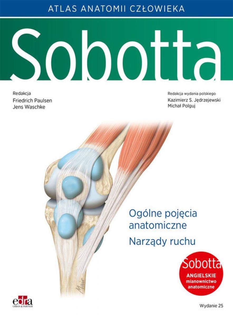 NAUKA ANATOMII MOŻE BYĆ FASCYNUJĄCA!• Ten Atlas to więcej niż książka – to klucz do nauki anatomii i jej wykorzystania w praktyce klinicznej!• Kolejne wydanie Atlasu z najwyższej jakości rycinami wykonanymi na podstawie prawdziwych preparatów• Uwzględnienie wszystkich struktur zgodnie z obecną wiedzą naukową• Zagadnienia egzaminacyjne oraz przykładowe pytania z egzaminów, które pomagają w utrwaleniu materiału i sprawdzeniu swojej wiedzy• Przypadki kliniczne dostarczające cennych informacji w przyszłej praktyce klinicznej• Ponad 100-letnie doświadczenie, 25 wydań oraz tysiące charakterystycznych rycin anatomicznych – wszystko to sprawia, że Sobotta odnosi ciągłe sukcesy.Atlas anatomii człowieka autorstwa Johannesa Sobotty obchodzi swoje „srebrne gody”, ponieważ jest to kolejne już 25. wydanie tego znakomitego podręcznika. Z tej okazji z wielką przyjemnością przyjęliśmy propozycję ze strony wydawnictwa Edra Urban & Partner do wzięcia udziału w ponownym przystosowaniu Atlasu Sobotty do użytku na polskich uczelniach medycznych. Nieomal od stu lat jest to atlas powszechnie doceniany przez studentki i studentów nauk medycznych i nauk pokrewnych, a także przez lekarki i lekarzy wszystkich specjalności. Andreas Vesalius w swoim wiekopomnym dziele De humani corporis Fabrica libri septem, wydanym w roku 1543, napisał: „anatomia jest podstawą wszystkich nauk medycznych – zarówno podstawowych, jak i klinicznych”. Niniejsze 25. Oryginalne wydanie Atlasu anatomii człowieka J. Sobotty opracowali – podobnie jak poprzednie – profesorowie Friedrich Paulsen i Jens Waschke, renomowani specjaliści w dziedzinie anatomii makroskopowej i mikroskopowej, znakomici dydaktycy akademiccy i klinicyści. Oddawany użytkownikom podręcznik jest udoskonalony i unowocześniony, uwzględnia wprowadzenie nowoczesnych technik przyżyciowego obrazowania w diagnostyce medycznej (tomogramy TK i MR oraz angiogramy), a także zawiera znaczną liczbę informacji odnoszących się bezpośrednio do postępowania w praktyce klinicznej.Atlas obejmuje trzy tomy: tom 1. – ogólne pojęcia anatomiczne oraz opisy narządów ruchu, tom 2. – budowa narządów wewnętrznych klatki piersiowej, jamy brzusznej i miednicy, tom 3. – morfologia głowy i szyi, narządów zmysłu wzroku, słuchu i równowagi oraz układu nerwowego ośrodkowego i obwodowego. Ryciny w Atlasie zostały zaopatrzone w krótkie opisy, bardzo istotne w zajęciach prosektoryjnych. Ważne są także dane dotyczące rozwoju narządów, wyjaśniające powstawanie wad wrodzonych w poszczególnych okresach rozwoju płodu. Atlas anatomii człowieka Sobotty w obecnej postaci ma motywować studentki i studentów do aktywnego uczestnictwa w zajęciach prosektoryjnych, zwłaszcza do dedukcji i samodzielnego pogłębiania wiedzy medycznej tzw. przyczynowo-skutkowej, opartej na łączeniu podstaw anatomiczno-fizjologicznych z dalszym wnioskowaniem klinicznym, a przez to zwrócenia większej uwagi na aspekty praktyczne w trakcie studiowania medycyny. Pragniemy jednocześnie stwierdzić, iż mimo zawartych w Atlasie opisów morfologii ciała ludzkiego, nie może on całkowicie zastąpić podręczników anatomii. Atlas anatomii człowieka jest niezmiernie przydatny w studiowaniu przedmiotu, ponieważ ułatwia zrozumienie budowy i topografii narządów oraz przebiegu naczyń i nerwów. Jesteśmy przekonani, iż przygotowane obecnie edycje Atlasu Sobotty, w wersjach nazewniczych polsko-łacińskiej oraz polsko-angielskiej, staną się wartościową pomocą w studiowaniu anatomii, a także w praktyce klinicznej, szczególnie w specjalnościach zabiegowych.Z PrzedmowyKazimierz S. JędrzejewskiMichał Polguj Atlas anatomii człowieka Sobotta. Tom 1. Angielskie mianownictwo. Ogólne pojęcia anatomiczne. Narząd Atlas anatomii człowieka Sobotta to fundamentalna publikacja dla studentów medycyny, lekarzy oraz wszystkich zainteresowanych szczegółowym poznaniem anatomii ludzkiego ciała. Tom 1 koncentruje się na angielskim mianownictwie oraz ogólnych pojęciach anatomicznych, dostarczając niezbędnych informacji w przystępnej formie. Dla kogo jest ta książka? Studenci medycyny i kierunków pokrewnych Praktykujący lekarze i specjaliści Osoby przygotowujące się do egzaminów z anatomii Pasjonaci anatomii i biologii Co zyskasz dzięki tej publikacji? Kompleksowa wiedza: Zdobądź szczegółowe informacje na temat anatomii człowieka, które są niezbędne w praktyce medycznej. Angielskie mianownictwo: Ułatw sobie naukę i komunikację w międzynarodowym środowisku medycznym. Przystępna forma: Zrozumiałe opisy i ilustracje, które wspierają proces nauki. Wysoka jakość merytoryczna: Publikacja oparta na najnowszych badaniach i standardach anatomicznych. Kluczowe tematy i obszary Anatomia człowieka Ogólne pojęcia anatomiczne Angielskie mianownictwo anatomiczne Struktura i funkcje narządów Ilustracje anatomiczne O Wydawcy Edra Urban & Partner – renomowane wydawnictwo specjalizujące się w publikacjach medycznych i naukowych, które dostarcza wysokiej jakości materiały edukacyjne dla studentów i profesjonalistów w dziedzinie medycyny. Producent/osoba odpowiedzialna za bezpieczeństwo produktuEDRA Urban & Partner sp. z o.o.Kościuszki 2950-011 Wrocławksiegarnia@edraurban.pl713306189