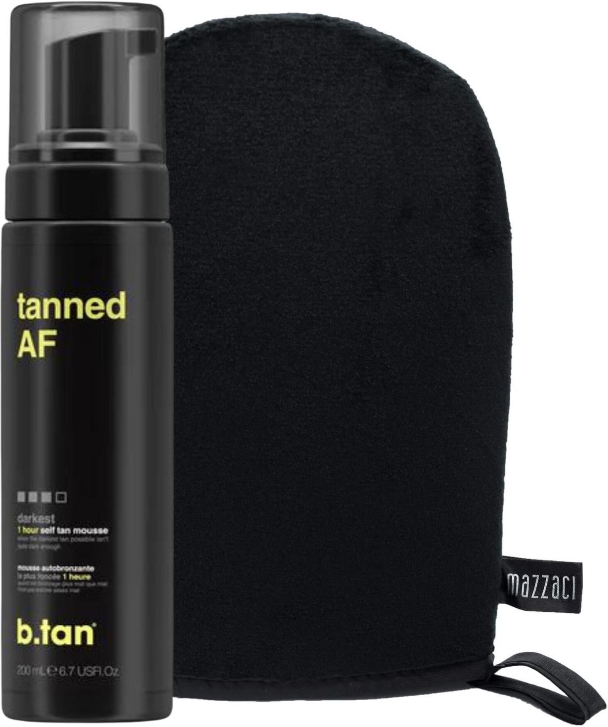 b.tan Tanned Af Pianka Samoopalająca + Rękawicab.tan Tanned Af Pianka Samoopalająca 200mlNajciemniejsza pianka samoopalająca w 1h. Gdy najciemniejsza możliwa opalenizna to za mało.Gdy najciemniejsza możliwa opalenizna to za mało, gdzie szukać pomocy? To proste, wystarczy sięgnąć po najciemniejszy z najciemniejszych możliwych samoopalaczy. ;) najwyraźniej jesteś uzależniona — masz obsesję na punkcie opalania. Nie będziemy prawić ci morałów. Jesteśmy tu po to, żeby pomóc ci zrealizować twoje marzenia.Czym jestem?Najciemniejszy z najciemniejszych możliwych samoopalaczy. ;) najwyraźniej jesteś uzależniona — masz obsesję na punkcie opalania. Nie będziemy prawić ci morałów. Jesteśmy tu po to, żeby pomóc ci zrealizować twoje marzenia.Dlaczego mnie pokochaszStworzona dla ciebie, jeśli szukasz najciemniejszej możliwej opaleniznyBez żadnych sztuczek ani zapachu sztucznej opalenizny, tylko najciemniejszy możliwy odcień na tej planecieOpalenizna rozwija się w ciągu 1 godziny; pozostaw na 4+ godziny, aby uzyskać ciemniejszy efektJestem produktem w 100% wegańskim, wolnym od różnych paskudnych dodatków, takich jak parabeny. W dodatku kocham zwierzęta, dlatego nigdy mnie na nich nie testowano.Mazzaci Rękawica Do Nakładania SamoopalaczaAplikator do kremu samoopalającegoRękawica wykonana jest z miękkiego materiału aplikacyjnego, który zapewnia dokładną i pozbawioną smug, idealnie równą aplikacje.Super miękka aksamitna, delikatna w dotyku, zapewnia łatwą i przyjemną aplikacje.Współpracuje ze wszystkimi formułami, dając piękny efekt, bez smug.Ulepszona bariera chroniąca przed przeciekaniem, zapobiegająca plamieniu rąk.Kolor wyróżnia się na półce i świetnie komponuje się pozostałymi opakowaniami produktów Mazzaci