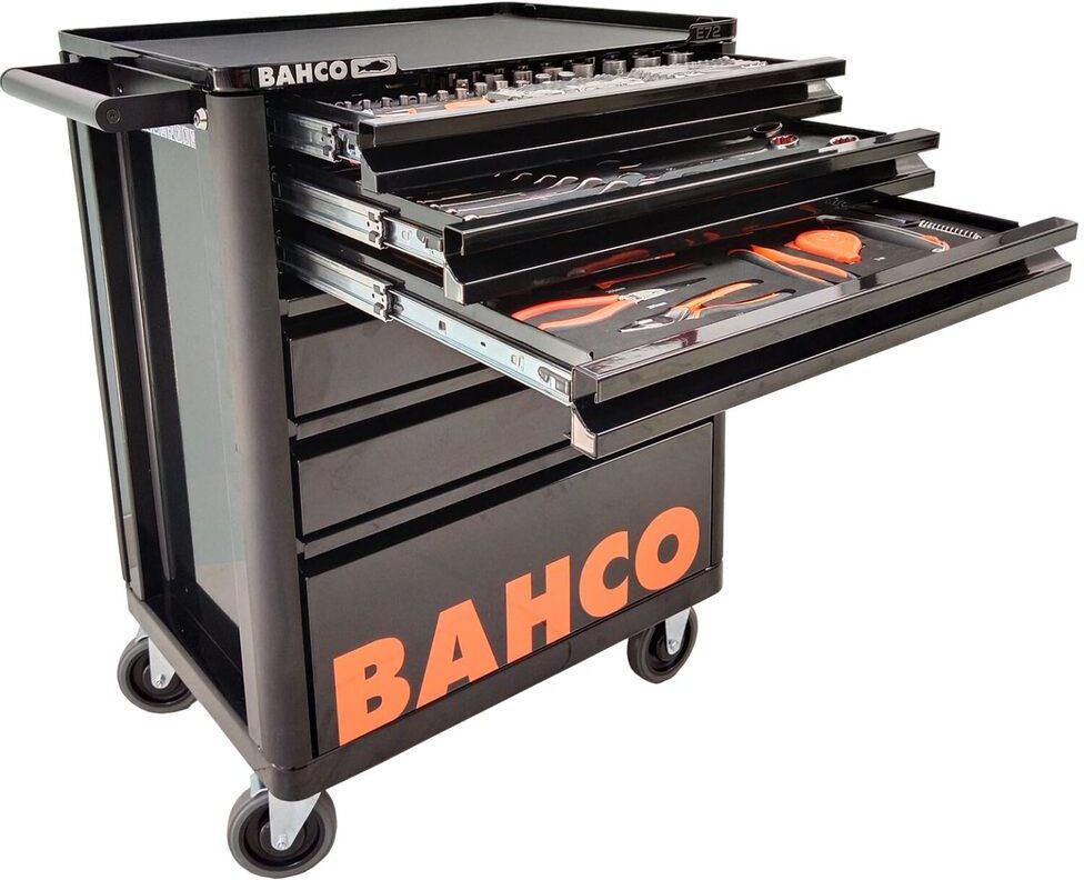 Wózek warsztatowy 6-szufladowy z wyposażeniem 216 narzędzi Bahco [1472K6BKFFSD] duży wózek z 6 szufladami, duża ładowność pojedynczej szuflady - do 30kg, prowadnice szuflad z łożyskami kulkowymi o pełnym wysuwie, "klikowy" system domykania chroni przed otwarciem podczas transportu, pełny dostęp do …