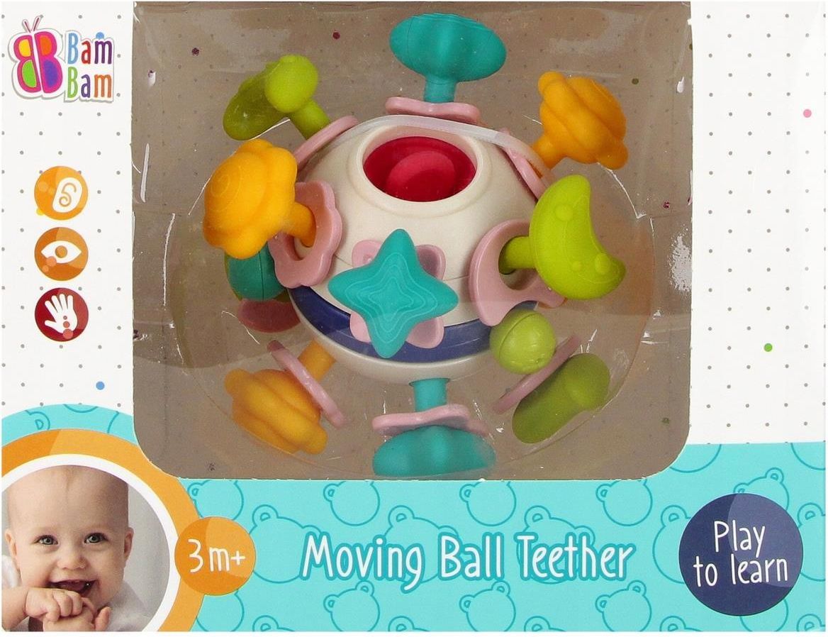 Bam Bam Kula Sensoryczna 541621 KULA SENSORYCZNA BAM BAM pozwala na doskonalenie umiejętności manualnych i motoryki małego dziecka w pełnym zakresie. Łatwość jej utrzymania w małej dłoni, chwycenia, potrząsania, zginania doskonale mobilizuje dziecko do manewrowania i manipulacji paluszkami, zapewniając mu przy tym długą zabawę. Intensywne kolory wypustek grzechotki stymulują jego percepcję wzrokową, a zróżnicowana tekstura, zmysł dotyku. Dodatkowe kuleczki gumowe o zróżnicowanej fakturze i kształcie , wydają dyskretne dźwięki szeleszczenia podczas potrząsania stymulując słuch dziecka. Zabawka wykonana z najwyższej jakości plastiku oraz gumy, bez ftalanów, zgodna z EN-71 i CE zapewnia bezpieczną zabawę. wymiary produktu (dł. x wys. x gł.)[cm]: 10x10x10, wymiary opakowania (dł. x wys. x gł.)[cm]: 18x14x14, waga produktu bez opakowania [kg]: 0,15 kg, waga produktu w opakowaniu [kg]: 0,24 kg, nie wymaga zasilania bateriami. Zabawka przeznaczona dla dzieci w wieku: 3m+