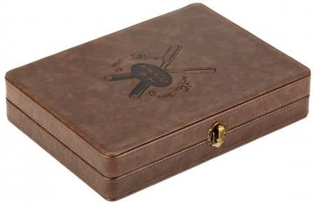 Barberski Organizer Na Nożyczki P161 W każdym salonie fryzjerskim kluczowe jest, aby narzędzia były zawsze w zasięgu ręki oraz dobrze zorganizowane. Barberski Organizer Na Nożyczki P161 to elegancki i praktyczny element wyposażenia, który umożliwia sprawną i efektywną pracę. Został stworzony z myślą o wygodzie profesjonalistów, a jego funkcjonalność znacząco poprawia codzienne wykonywanie usług, co przekłada się na zadowolenie klientów. Typ i zastosowanie sprzętu Barberski Organizer Na Nożyczki P161 to doskonałe rozwiązanie do przechowywania nożyczek oraz innych narzędzi niezbędnych w pracy fryzjera. Jego zastosowanie jest szerokie i obejmuje: Przechowywanie nożyczek fryzjerskich – umożliwia bezpieczne i wygodne trzymanie nożyczek w gotowości do użycia, Organizacja drobnych akcesoriów – idealny do przechowywania grzebieni, szczotek oraz klipsów, Ułatwienie dostępu do narzędzi – pozwala na szybkie sięgnięcie po potrzebne akcesoria podczas pracy, Utrzymanie porządku na stanowisku – sprzyja estetyce i organizacji w salonie. Materiał wykonania i wymiary Barberski Organizer Na Nożyczki P161 został wykonany z wysokiej jakości ekologicznej skóry. Materiał ten nie tylko prezentuje się elegancko, ale również jest łatwy w czyszczeniu i odporny na uszkodzenia. Wymiary wynoszą 27 cm wysokości, 20 cm szerokości oraz 6 cm głębokości, co sprawia, że jest on wystarczająco kompaktowy, by zmieścić się na biurku fryzjera, a jednocześnie pojemny, by pomieścić wszystkie niezbędne akcesoria. Regulacja i funkcje dodatkowe Barberski Organizer Na Nożyczki P161 charakteryzuje się przemyślaną konstrukcją. Posiada dwa głębokie zagłębienia na nożyczki, które pomieszczą do 8 narzędzi. Dodatkowo wyposażony jest w przedziałkę z trzema kieszeniami po obu stronach, co pozwala na przechowywanie drobnych przedmiotów, takich jak grzebienie czy inne narzędzia. Organizer można wygodnie zamknąć na metalowy zatrzask, co zwiększa bezpieczeństwo przechowywanych akcesoriów. Cechy i zalety produktu Barberski Organizer Na Nożyczki P161 to nie tylko estetyczny element wyposażenia, ale także funkcjonalne narzędzie dla każdego fryzjera. Oto najważniejsze cechy: Elegancki design – doskonale komponuje się z wystrojem salonu, Wysoka jakość materiałów – wykonany z ekologicznej skóry, co zapewnia trwałość, Przemyślana organizacja – umożliwia łatwe przechowywanie i dostęp do narzędzi, Kompaktowe wymiary – idealnie pasuje na biurko fryzjera, Bezpieczne przechowywanie – zamknięcie na metalowy zatrzask zwiększa bezpieczeństwo. Wybór odpowiedniego wyposażenia salonu fryzjerskiego ma ogromne znaczenie dla komfortu oraz efektywności pracy. Barberski Organizer Na Nożyczki P161 to niezastąpiony element, który sprzyja organizacji i estetyce, ułatwiając jednocześnie codzienne zadania. To akcesorium, które powinno znaleźć się w każdym profesjonalnym salonie fryzjerskim.