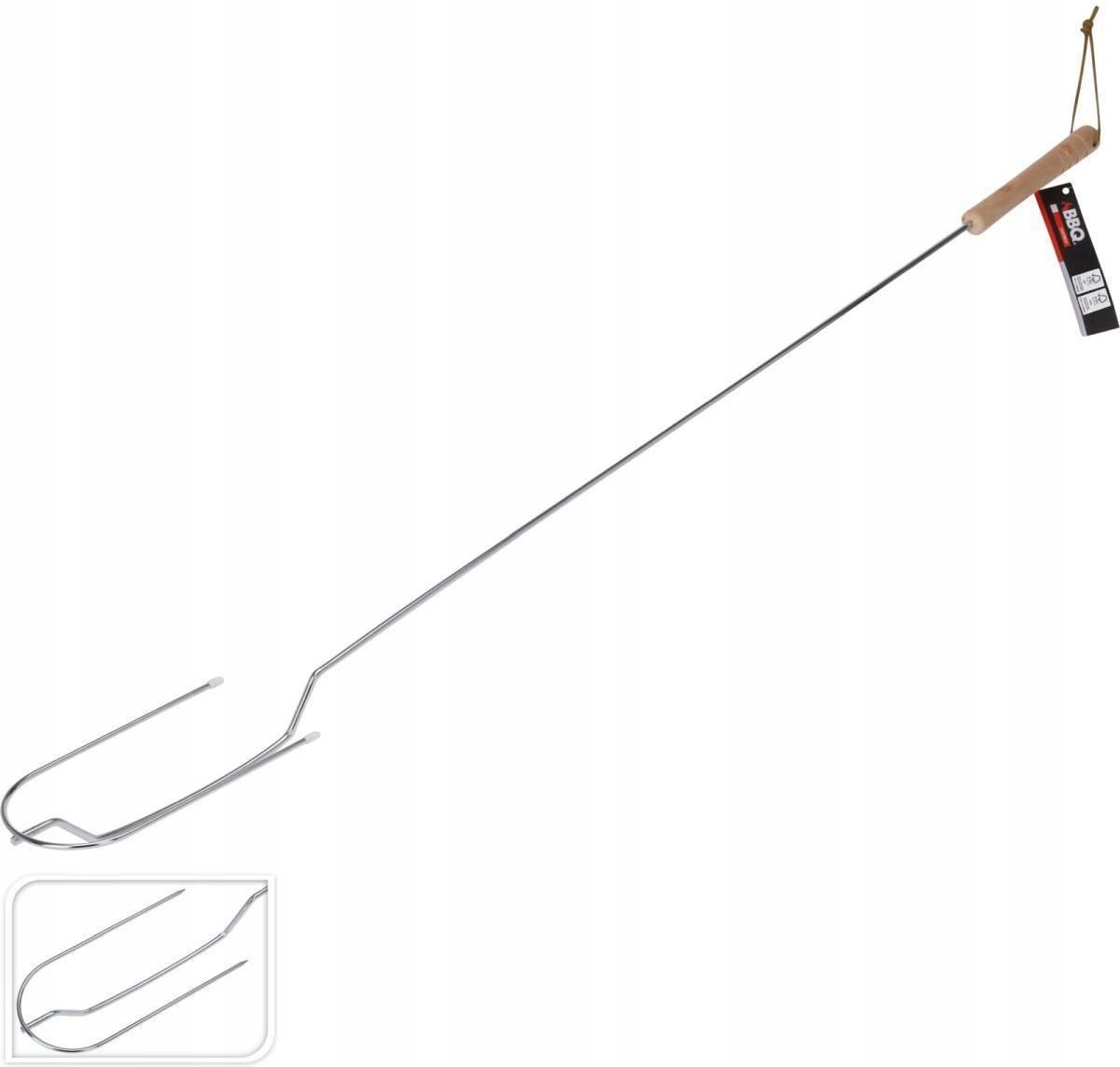 Chcesz zaprosić znajomych na OGNISKO i szukasz odpowiedniego asortymentu? WIDELEC OGNISKOWY 100 CM Z DREWNIANĄ RĄCZKĄ odporny na wysokie temperatury będzie idealny do pieczenia kiełbasy! ostrza wykonane ze stali nierdzewnej długość 100 cm zapewnia bezpieczną odległość od ognia drewniany uchwyt zabezpieczy przed poparzeniem dłoni ułatwia smażenie kiełbasy z wielu stron w pewnej odległości od ognia pozwala upiec kilka kiełbas jednocześnie bez obawy o ich spadnięcie do ognia łatwy w utrzymaniu czystości WIDELEC OGNISKOWY 100 CM Z DREWNIANĄ RĄCZKĄ to przydatne narzędzie, które umożliwia pieczenie nawet dwóch kiełbasek jednocześnie w ognisku z bezpiecznej odległości. UNIWERSALNY Widelec jest przydatnym narzędziem do pieczenia na ognisku. Pełni kilka funkcji, które ułatwiają proces przygotowywania potraw na otwartym ogniu. Dzięki niemu możesz obracać mięso tak, aby przypiekło się z każdej strony, unikając poparzeń. Z TRWAŁYCH MATERIAŁÓW Solidna stalowa konstrukcja widelca jest odporna na wysokie temperatury. Widelec nie wygina się pod ciężarem produktów, co sprawia, że możesz piec bez obaw o jego stabilność. Materiał odporny na rdzę zapewnia długą żywotność, nawet przy częstym użytkowaniu. PIECZENIE BEZ OPARZEŃ Dzięki długiej stalowej konstrukcji możesz cieszyć się grillowaniem bez ryzyka poparzenia. Ergonomiczna drewniana rączka zapewnia wygodny i pewny chwyt, a solidne widełki pozwalają stabilnie utrzymać kiełbaski, warzywa czy pianki. DREWNIANE RĄCZKI Ergonomiczna drewniana rączka zapobiega nagrzewaniu się. Drewno naturalnie izoluje ciepło, dzięki czemu rączka pozostaje chłodna nawet przy długim grillowaniu. Dzięki ergonomicznej budowie widelec dobrze leży w dłoni, co zwiększa komfort użytkowania. DWA ZĘBY Dwa solidne, stalowe zęby ułatwiają nabijanie i stabilne trzymanie jedzenia. Dzięki podwójnym zębom kiełbaski, warzywa czy pianki nie obracają się samoczynnie, co pozwala na równomierne pieczenie. Zapewniają pewne i bezpieczne trzymanie produktów, minimalizując ryzyko ich zsunięcia do ognia. Niech pieczenie kiełbasek i warzyw stanie się jeszcze przyjemniejsze! Widelec ogniskowy 100 cm to wygoda, bezpieczeństwo i trwałość w jednym. Zabierz go na biwak, ognisko czy rodzinny grill i delektuj się wyjątkowym smakiem pieczonych przysmaków! Parametry Wymiar ok.: 100 x 8,5 x 3,5 (dł. x szer. x gł.) cm Długość ostrzy: 18 cm Wymiar drewnianej rączki: 14,5 x 2 cm (dł. x szer.) Materiał: stal chromowana, drewno Kolor: srebrny, uchwyt drewniany Waga netto: 0,220 kg Waga brutto: 0,240 kg Marka: BBQ Line Opakowanie: 10 x 3,5 x 112 cm (szer. x gr. x wys.) BBQ Line to marka obejmuje różnorodne narzędzia i akcesoria, które są używane do przygotowywania potraw na grillu. Dzięki nim możesz dostosować swoje narzędzia do konkretnych potrzeb i stylu przygotowywania potraw na grillu.