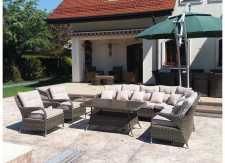 BelGiardino - meble ogrodowe z technorattanuDzięki zdobytemu na przestrzeni lat doświadczeniu jesteśmy w stanie dostarczyć główne elementy aranżacji ogrodów, tarasów oraz balkonów. Z roku na rok staramy się dopracowywać naszą kolekcję, odpowiadając na potrzeby klientów i zmieniające się trendy. Polecamy wysokiej jakości meble ogrodowe z technorattanu, które w każdej chwili dostosować można do aktualnych potrzeb. Skład kompletu jeden stół kwadratowy z blatem z hartowanego szkła o grubości 5mmlubjeden stół prostokątny z blatem z hartowanego szkła o grubości 5mm; jeden fotel z poduszkami w kolorze SZARY GRAFIT i o grubości 10cm; dwa elementy kończące z poduszkami w kolorze SZARY GRAFIT i o grubości 10cm; jeden element środkowy z poduszkami w kolorze SZARY GRAFIT i o grubości 10cm; jeden narożnik z poduszkami w kolorze SZARY GRAFIT i o grubości 10cm; opcjonalne dwa dodatkowe fotele; opcjonalne dwa dodatkowe podnóżki; opcjonalny dodatkowy pokrowiec w kolorze GRAFIT. Zalety kompletu odporność na działanie promieni UV; odporność na warunki atmosferyczne; elegancka plecionka; niepowtarzalne wzornictwo; wzmocniona konstrukcja stelaża; rama aluminiowa, malowana proszkowo; dodatkowe wzmocnienia zapewniają długotrwałą wygodę i komfort użytkowania mebli ogrodowych. Materiały i wykonanieKomplet mebli ogrodowych POSEJDON marki BelGiardino jest wykonany z PÓŁOKRĄGŁEGO technorattanu w kolorze GRAFITOWO-SZARY BRĄZ i o grubości 6mm, który jest doskonałą imitacją naturalnego rattanu. lekkie stelaże są wykonane z aluminium malowanego proszkowo; konstrukcja mebli ogrodowych jest ręcznie opleciona wspomnianym rattanem PE, co potęguje efekt naturalności; technorattan cechuje się wyjątkową lekkością oraz wytrzymałością na warunki atmosferyczne, takie jak deszcz i śnieg; dzięki zastosowaniu nowego, syntetycznego materiału uzyskano doskonałą jakość oraz wytrzymałość; w komplecie znajdują się poduszki, które wytworzono z wodoodpornego materiału. Zapewniają one komfortowe użytkowanie zestawu; wszystkie pokrowce na poduszki są zaimpregnowane, dzięki czemu są odporne na warunki atmosferyczne oraz poplamienia, dzięki czemu przypadkowo wylane napoje nie stanowią już żadnego problemu; zastosowany zamek błyskawiczny daje możliwość szybkiego zdjęcia i wyczyszczenia każdej poszewki. UwagaW wyniku działania promieni słonecznych oraz wysokich temperatur może występować efekt "falującego" rattanu na blacie stołu. Dzieje się tak z powodu skupiania energii słonecznej przez szybę. Efekt ten jest odwracalny - obniżenie temperatury skutkuje natychmiastowym powrotem do pierwotnego stanu. Zalecamy ustawić zestaw pod zadaszeniem lub w zacienionym miejscu.