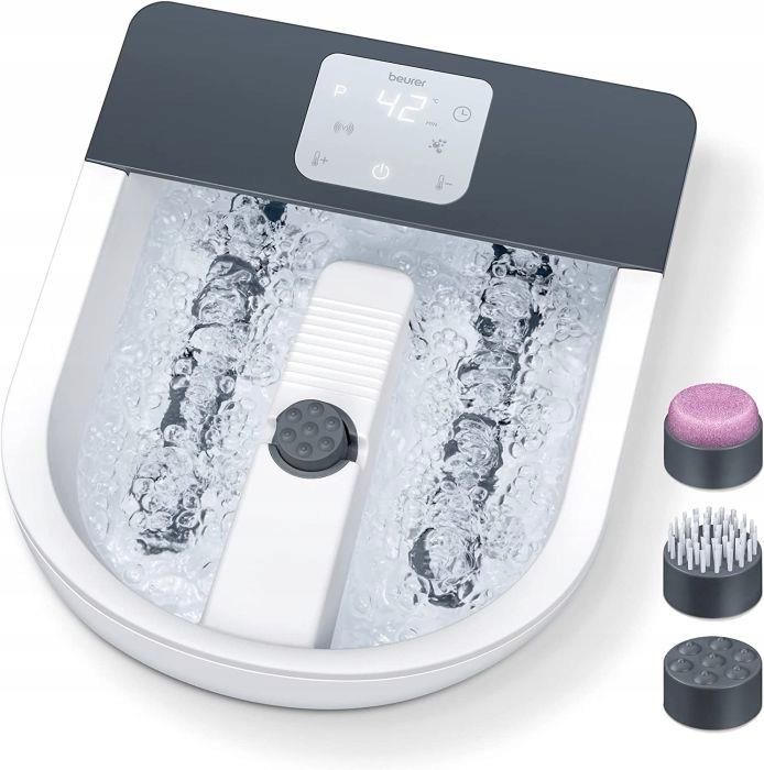 Hydromasażer do nóg Beurer FB 60 Szukasz sposobu na odprężenie i relaks Twoich stóp? Jeśli tak, to hydromasażer do nóg Beurer FB 60 może być idealnym rozwiązaniem dla Ciebie. Wyposażony w wbudowane funkcje masażu bąbelkowego i wibracyjnego oraz ogrzewanie wodne, ten urządzenie zapewni Twoim stopom zasłużoną kurację wellness. Niezależnie od tego, czy wracasz po długim dniu pracy czy po intensywnym treningu, higieniczne i kojące właściwości hydromasażera pomogą Ci pozbyć się bólu i zmęczenia. Odczuwasz dyskomfort po całym dniu chodzenia lub siedzenia? Hydroterapia jest jedną z najskuteczniejszych metod łagodzenia bólu i zmęczenia stóp. Dzięki hydromasażerowi do nóg Beurer FB 60 możesz cieszyć się profesjonalnym masażem bez konieczności opuszczania domu. Funkcja masażu kąpieli bąbelkowej delikatnie pobudza krążenie krwi w stopach, co przynosi ulgę przy obrzękach lub skurczach mięśniowych. Dodatkowo, funkcja wibracji pomaga złagodzić spięcie mięśniowe i poprawić ogólną elastyczność stóp. Relaksuj się przy pomocy inteligentnych funkcji Hydromasażer Beurer FB 60 został zaprojektowany tak, aby dostarczyć maksymalny komfort i relaks. Możesz wstępnie ustawić temperaturę wody za pomocą wbudowanego termostatu, dzięki czemu Twoje stopy będą zawsze w odpowiednio ciepłej kąpieli. Ponadto, hydromasażer jest wyposażony w praktyczny timer, który automatycznie wyłączy urządzenie po upływie ustawionego czasu masażu. Dzięki wygodnemu pilocie zdalnego sterowania będziesz mógł kontrolować wszystkie funkcje hydromasażera bez konieczności schylania się czy opuszczania nóg do wanny. Zrelaksuj się na kanapie lub fotelu i korzystaj z pełnej kontroli nad swoją sesją masażu. Zadbaj o swoje stopy już dziś! Beurer FB 60 to nie tylko luksusowe doświadczenie dla Twoich stóp, ale także inwestycja w Twój ogólny stan zdrowia i dobry samopoczucie. Odpocznij od codziennych obowiązków i spraw sobie chwilę relaksu z hydromasażerem Beurer FB 60 - Twój partner wellness dla zmęczonych nóg. Nie czekaj dłużej i zapewnij swoim stopom ulgę oraz regenerację, które zasługują. Zamów hydromasażer do nóg Beurer FB 60 już dziś i ciesz się komfortem relaksu w zaciszu własnego domu. Specyfikacja Hydromasażer do nóg Beurer FB 60 - relaks dla Twoich stóp Szukasz sposobu na odprężenie i relaks Twoich stóp? Jeśli tak, to hydromasażer do nóg Beurer FB 60 może być idealnym rozwiązaniem dla Ciebie. Wbudowane funkcje masażu bąbelkowego i wibracyjnego oraz ogrzewanie wodne zapewnią Twoim stopom zasłużoną kurację wellness i pomogą Ci pozbyć się bólu i zmęczenia po długim dniu pracy. Wstępnie ustawione programy masażu i ręczne ustawienia Hydromasażer Beurer FB 60 ma wstępnie ustawione programy masażu, które zapewniają łatwe i szybkie ustawienie preferowanego trybu masażu. Dodatkowo, użytkownik może skorzystać z ręcznych ustawień masażu w celu dostosowania go do swoich indywidualnych potrzeb i preferencji. Dzięki temu, masażer FB 60 umożliwia łatwe i indywidualne relaksowanie się. 3 strefy temperatury Hydromasażer Beurer FB 60 posiada trzy strefy temperatury, które zapewniają wyjątkowe doznania wellness i ułatwiają relaks. Wbudowane ogrzewanie wodne pozwala na regulację temperatury wody i utrzymywanie jej na preferowanym poziomie. Dodatkowo, hydromasażer posiada podwójną ściankę, która zapewnia lepszą izolację termiczną i utrzymuje temperaturę wody dłużej. Wypustki i szerokie rolki Hydromasażer Beurer FB 60 posiada wypustki i bardzo szerokie rolki, które zapewniają relaksujący masaż spodniej części stóp. Wypustki pomagają w masowaniu stop oraz stymulują punkty akupresury, co pozytywnie wpływa na ogólne samopoczucie. Szerokie rolki z kolei pomagają w masowaniu całej powierzchni stopy, co przynosi ulgę w przypadku zmęczenia i bólu. Wyświetlacz Premium Touch Hydromasażer Beurer FB 60 wyposażony jest w wyświetlacz Premium Touch, który umożliwia łatwe i intuicyjne korzystanie z funkcji masażu. Wyświetlacz wyświetla informacje o wybranym programie masażu oraz umożliwia dostosowanie ustawień masażu do indywidualnych preferencji. 3 nasadki do pedicure W zestawie hydromasażera Beurer FB 60 znajdują się trzy nasadki do pedicure, które pomagają utrzymać stopy w dobrej kondycji. Nasadki te są łatwe w użyciu i zapewniają łatwe i skuteczne oczyszczanie Specyfikacja techniczna: Wstępnie ustawione programy masażu i ręczne ustawienia masażu w celu umożliwienia łatwego i indywidualnego relaksu 3 strefy temperatury zapewniające wyjątkowe doznania wellness Podwójna ścianka w celu lepszej izolacji termicznej Wypustki i bardzo szerokie rolki do relaksującego masażu spodniej części stóp Wyświetlacz Premium Touch 3 nasadki do pedicure zapewniające utrzymanie zadbanych stóp W zestawie torba do przechowywania i suszenia Praktyczne uchwyty do przenoszenia Antypoślizgowe gumowe nóżki ze zwijaczem kabla Możliwość zastosowania do rozmiaru buta 51 Funkcje: 3 Rodzaj masażu: masaż wibracyjny, masaż bąbelkowy Funkcja rozgrzewania: tak Moc: 630 W Wymiary produktu: 45,0 x 39,0 x 18,4 cm Waga produktu: około 4 kg Gwarancja w latach: 3