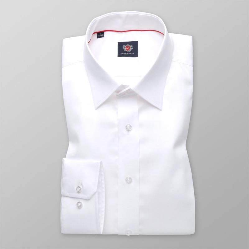 Biała taliowana koszula o gładkiej fakturze z klasycznym kołnierzykiem i mankietami na guziki, formuła 2 W Plus