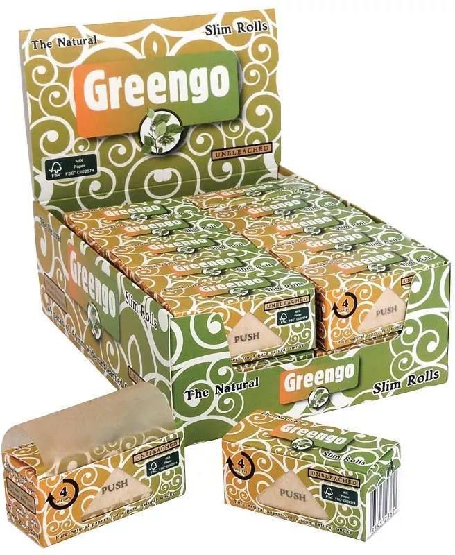 Bibułka w rolce GREENGO Slim Rolls 4 m GREENGO Slim Rolls - Bibułka w rolce wykonana z naturalnych komponentów. Lekko brązowa, całkowicie bezchlorowa. Posiada znak wodny znajdujący się na całej długości bibułki, co zapewnia wolne, równomierne spalanie. W opakowaniu 4 m bibułki w rolce.