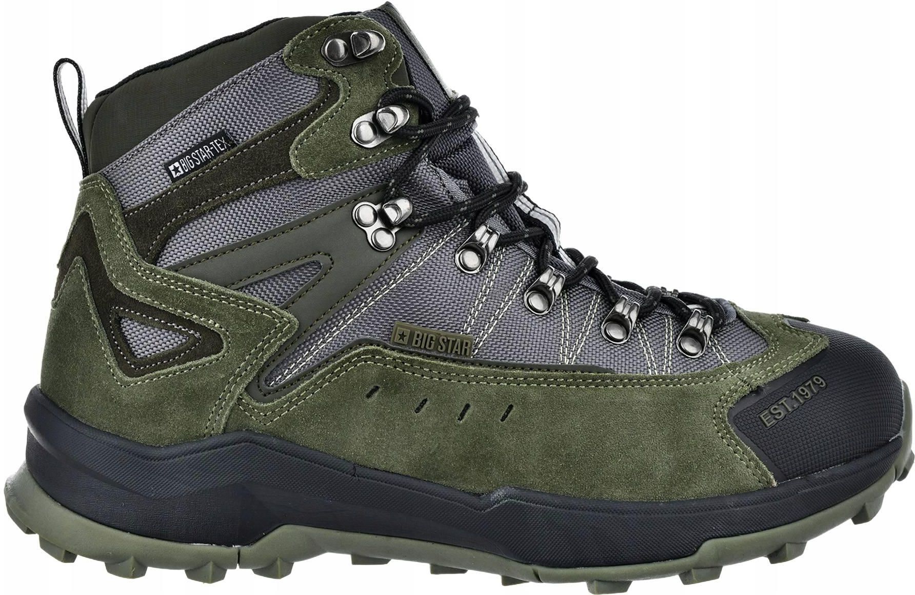 Trapery sportowe BIG STAR buty trekkingowe w góry wodoodporne Trapery sportowe BIG STAR trekkingowe wodoodporne Trapery to buty idealne w góry/na szlaki. Wykonane z wytrzymałych materiałów z wodoodporną membraną chroniącą przed wilgocią. Podeszwa z bieżnikiem zapewnia doskonałą przyczepność, a usztywniane noski dodatkową ochronę. Wysokość nad kostkę wspiera stabilizację, a odblaskowe elementy zwiększają widoczność. Buty trekkingowe bez ocieplenia, idealne na aktywność przez cały rok. Informacje szczegółowe obuwia sportowego BIG STAR Kolor: khaki, szary Marka: BIG STAR Model: OO174338 Materiał: skóra naturalna + materiał tekstylny Podeszwa: z bieżnikiem Wysokość: nad kostkę Ocieplenie: nie Sznurowanie Odblaskowe elementy Usztywniane noski Miękka wkładka HI POLY SYSTEM Wodoodporna Membrana Pętelka wspomagająca zakładanie